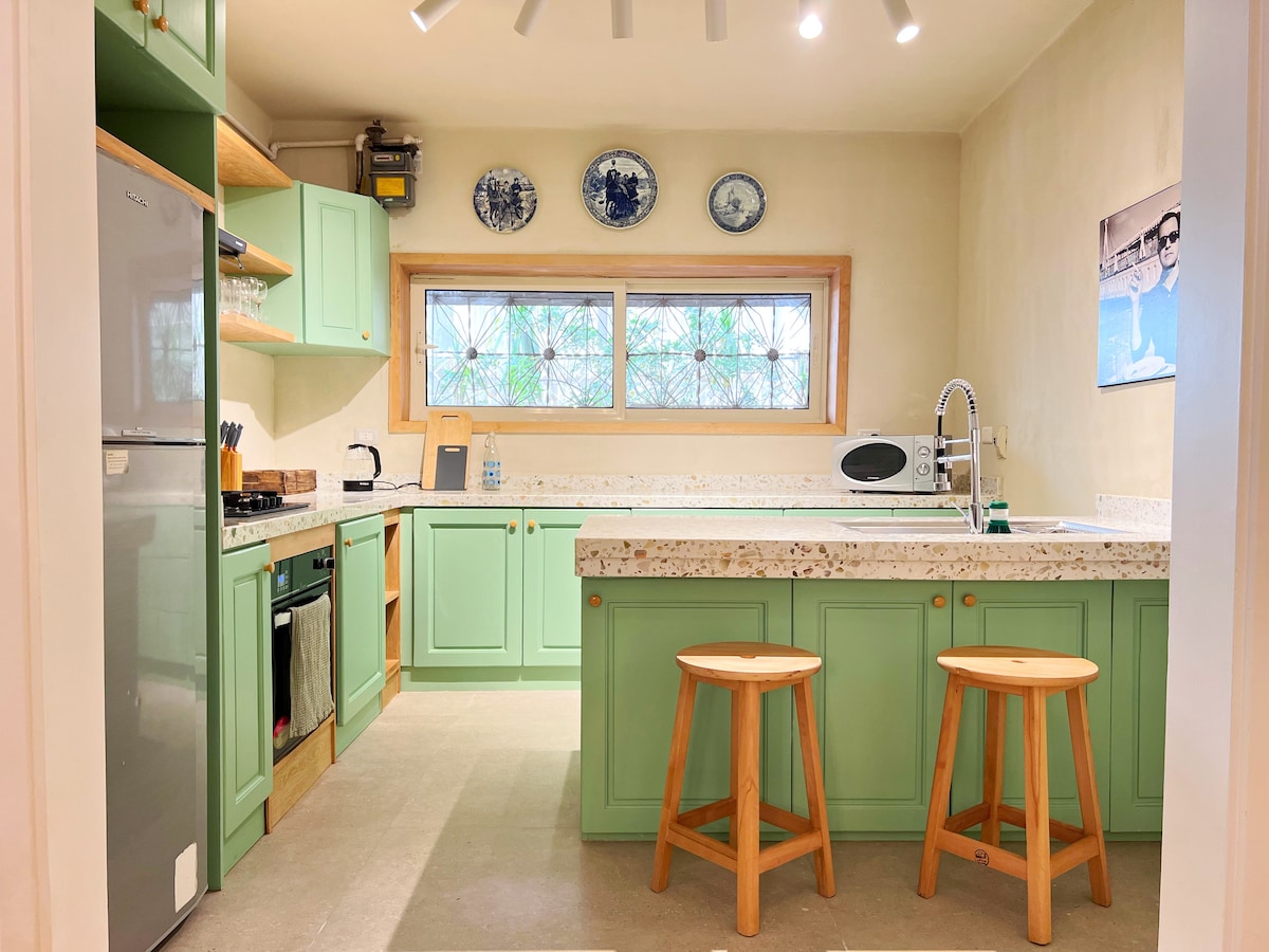 Bright and airy this apartment sleeps 6 people comfortably with its 3 bedrooms, 2 baths, and 2 balconies. Located in Cairo’s green lounge of Maadi, it lays within a short walking distance of the city's top dining and community spots This characterful and authentically Cairene apartment is decked out in vintage, antique, and handmade furniture and decor. It enjoys open treetop views, and is perched above Cairo's most popular bakery, meaning breakfast & coffee is only an elevator ride away.