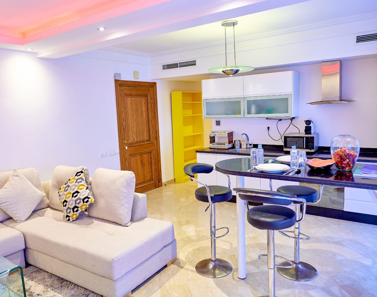 Fedezd fel a luxust Casablanca hercegnőnegyedében. Elegáns lakásunk a modern kényelmi szolgáltatásokat és a stílusos dekorációt ötvözi a felejthetetlen tartózkodás érdekében. Nagyszerű elhelyezkedéssel: közel a 🏟 mohamed stadionhoz és a Casablanca pénzügyi városhoz. a lakást nagy bevásárlóközpontok, csúcskategóriás butikok, ínyenc éttermek és szupermarketek veszik körül. az apartman csúcskategóriás bútorokkal, valamint alapvető és modern kényelmi szolgáltatásokkal rendelkezik.