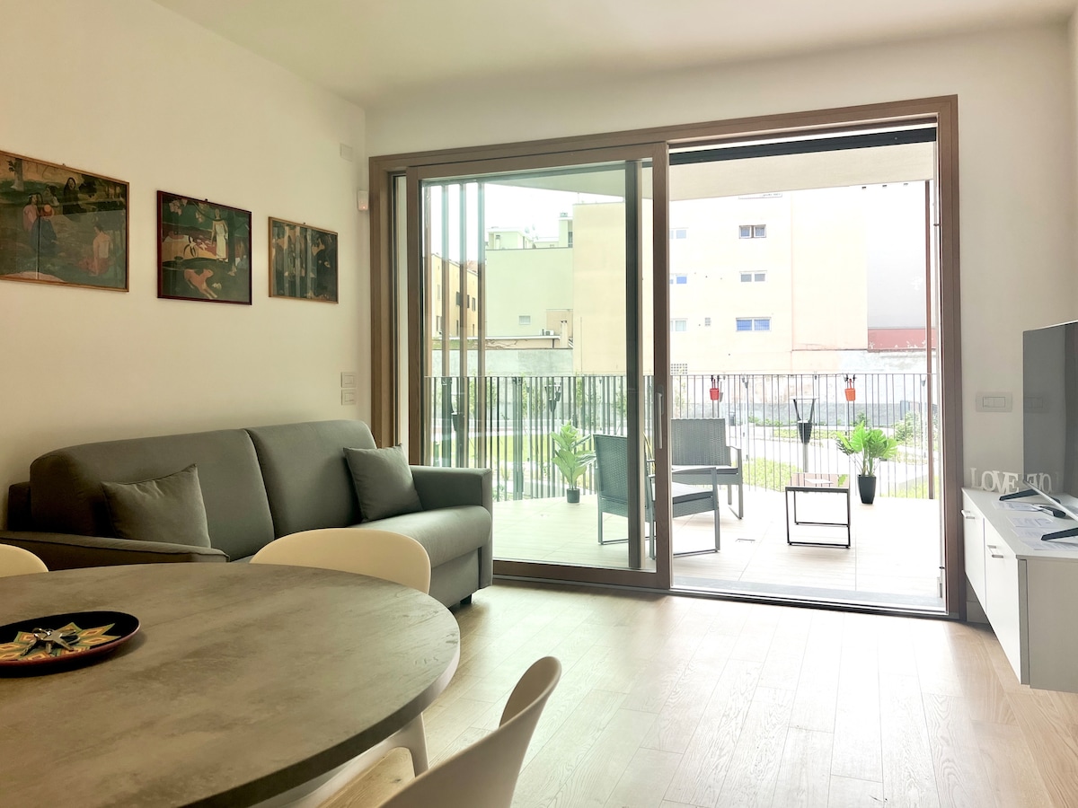 Vadonatúj, bájos és csendes lakosztály saját terasszal és fenntartott parkolóval. Egy hálószoba, nappali kétszemélyes kanapéval és egy fürdőszoba. Teljesen felszerelt konyha, légkondicionáló minden szobában és szupergyors Wi-Fi • Körülbelül 2 perc sétára található a TRAM vonal 24-es megállójától, amely közvetlenül az óvárosba (Duomo) vezet. 2 perc sétára a LIDL piactól. Privát kert kanapékkal és kávékészlettel, gyors Wi-Fi, Netflix, parkolás, kerti terület ✓