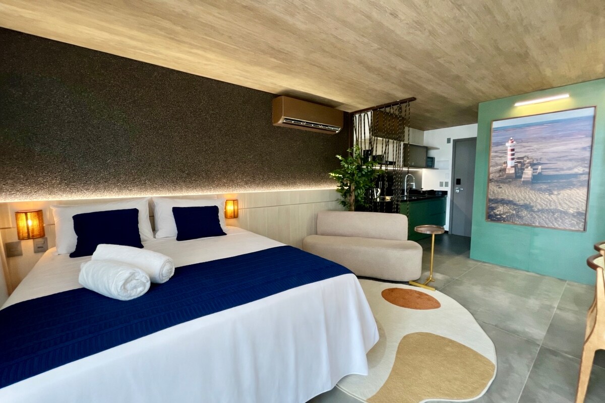 Luxus villa Apartman erkély a Pajuçara tengerre néző, panorámás, lélegzetelállító, lélegzetelállító kilátással a természetes medencékre. Suite Most High Standard, stílusos, kényelmes és exkluzív. Merész építészet a maximális kényelemért. Új, modern épület, 24 órás recepció, medence és tető panorámás kilátással, szauna, hidro, edzőterem, játékterem, játszószoba és privát parkoló. A legjobb helyen a tengerparton, Maceió legkifinomultabb és leginnovatívabb fejlesztésében.