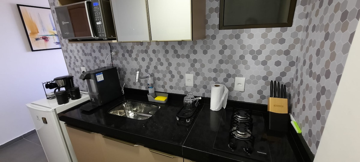 Hangulatos stúdióapartman Ponta Verde-ben, Maceió nemesi negyedében. A strandtól 300 méterre, a Pajuçara kézműves piacától, 1,8 km-re Maceió természetes medencéitől, valamint bárok, éttermek, szupermarketek és bevásárlóközpontok közelében található, Maceió szívében. A stúdióban van Smart TV, wifi és saját fürdőszoba zuhanyzóval, hajszárító és elektromos vasaló, míg a konyhában mikrohullámú sütő, hűtőszekrény, tűzhely, kávéfőző, szendvicssütő, edények,edények, csészék, borospoharak találhatók.