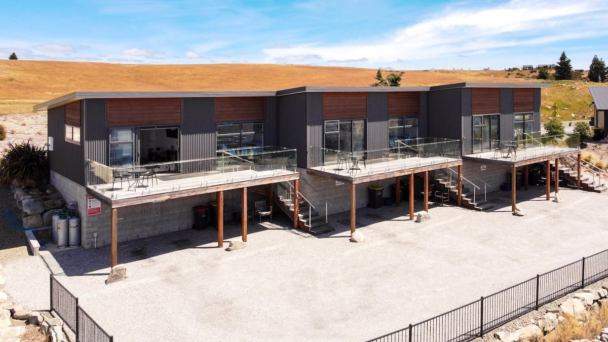 Ez a prémium lakás lenyűgöző kilátást nyújt a Tekapo-tóra és a környező hegyvonulatokra. A garázs felett épült hely saját bejárattal rendelkezik a loftlakáshoz. Modern és stílusos dizájn külön hálószobával: king-size méretű ágy és saját fürdőszoba. Magas mennyezettel ez a mesterien nyitott terv teljes konyhával és nappalival rendelkezik, nagy tolóajtókkal, amelyek melegséget és fényt biztosítanak a helyiség megtöltéséhez. A beltéri/kültéri áramlás egy erkélyre nyílik, ahol teljes mértékben megcsodálhatod a kilátást.
