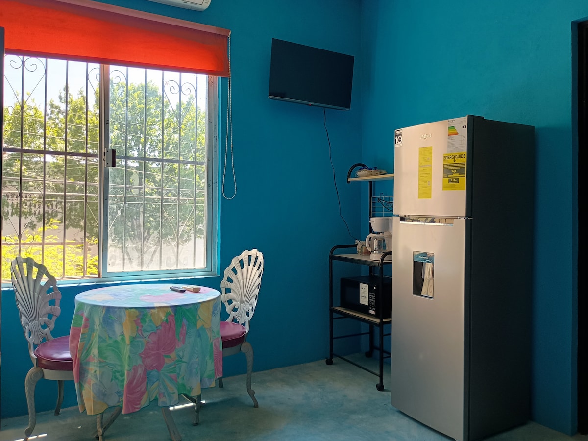 Teljes földszint, nagyon kényelmes, elegáns és nagyon csendes hely, közel a közlekedéshez, edzőteremhez, étteremhez, klubokhoz, múzeumokhoz stb. nagyon biztonságos és akadálymentes hely (a nap 24 órájában őrzik) nagyon széles (nem zsúfolt) teljesen privát Konyha, és minden, amire szükséged van a főzéshez monterrey Nuevo León nagyon szomszédságában