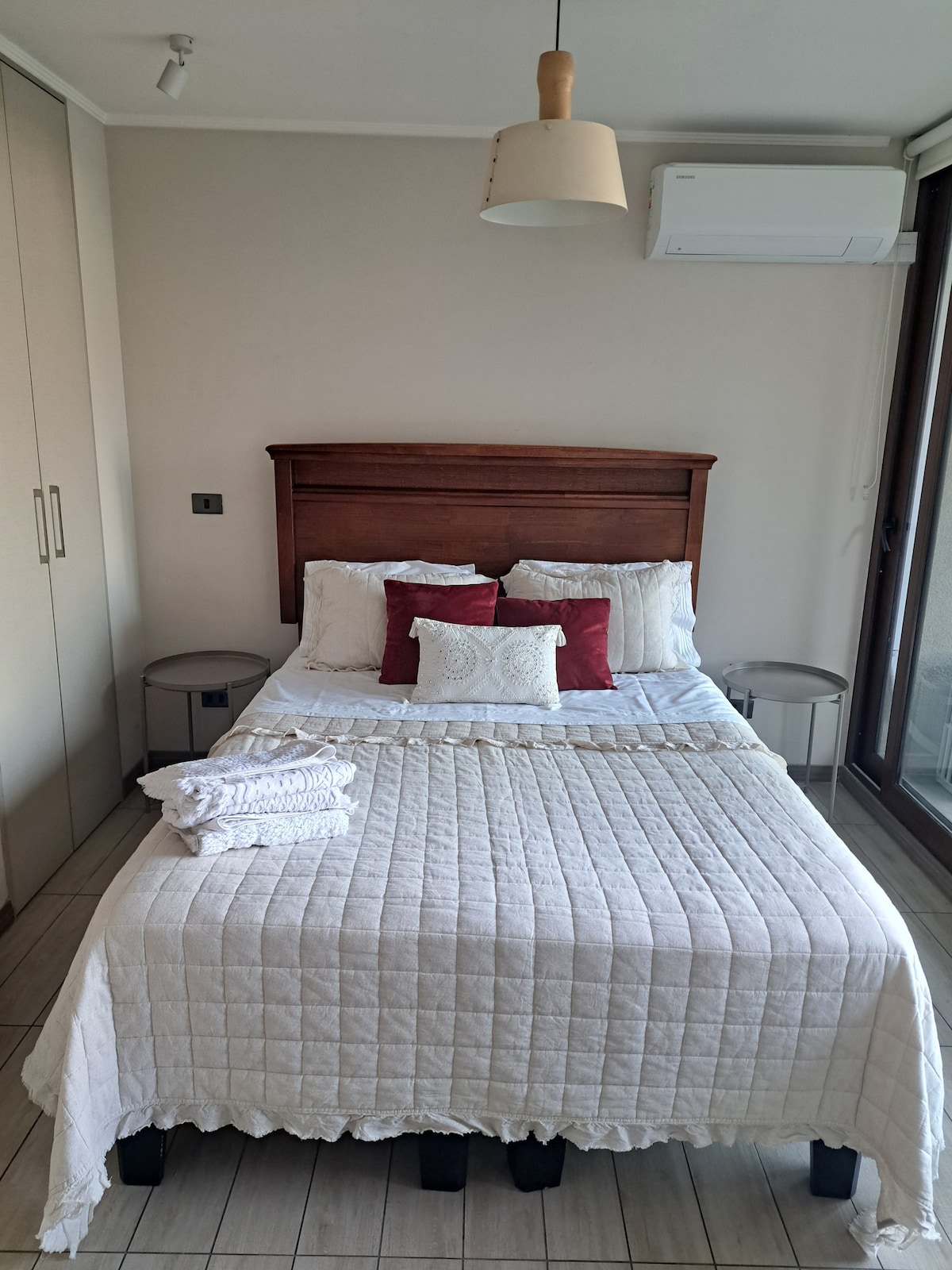 Disfruta de este alojamiento tranquilo y cómodo, dentro de un condominio seguro y amplio, que ofrece una Laguna Artificial navegable, playa artificial (Entre Dic-Feb), juegos para niños y gimnasio Sin tarifa de limpieza Cuenta con Lavadora y Secadora de ropa, para tu independencia total en estancias largas A pasos de Estación Metro Carlos Valdovinos, acceso rápido a Santiago Centro, cerca de Universidades, Institutos, Supermercados y Centros Comerciales Importante: No cuenta con estacionamiento