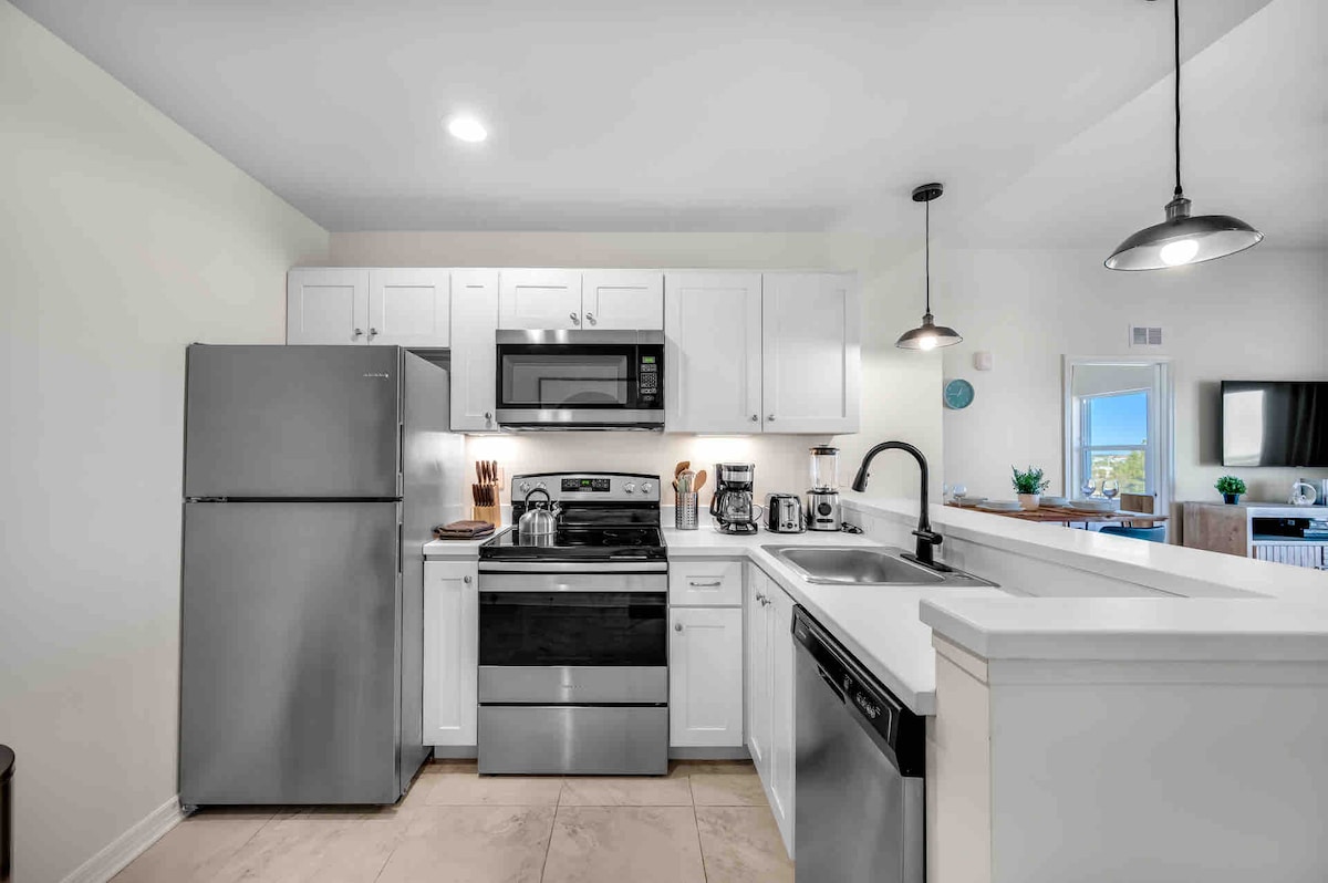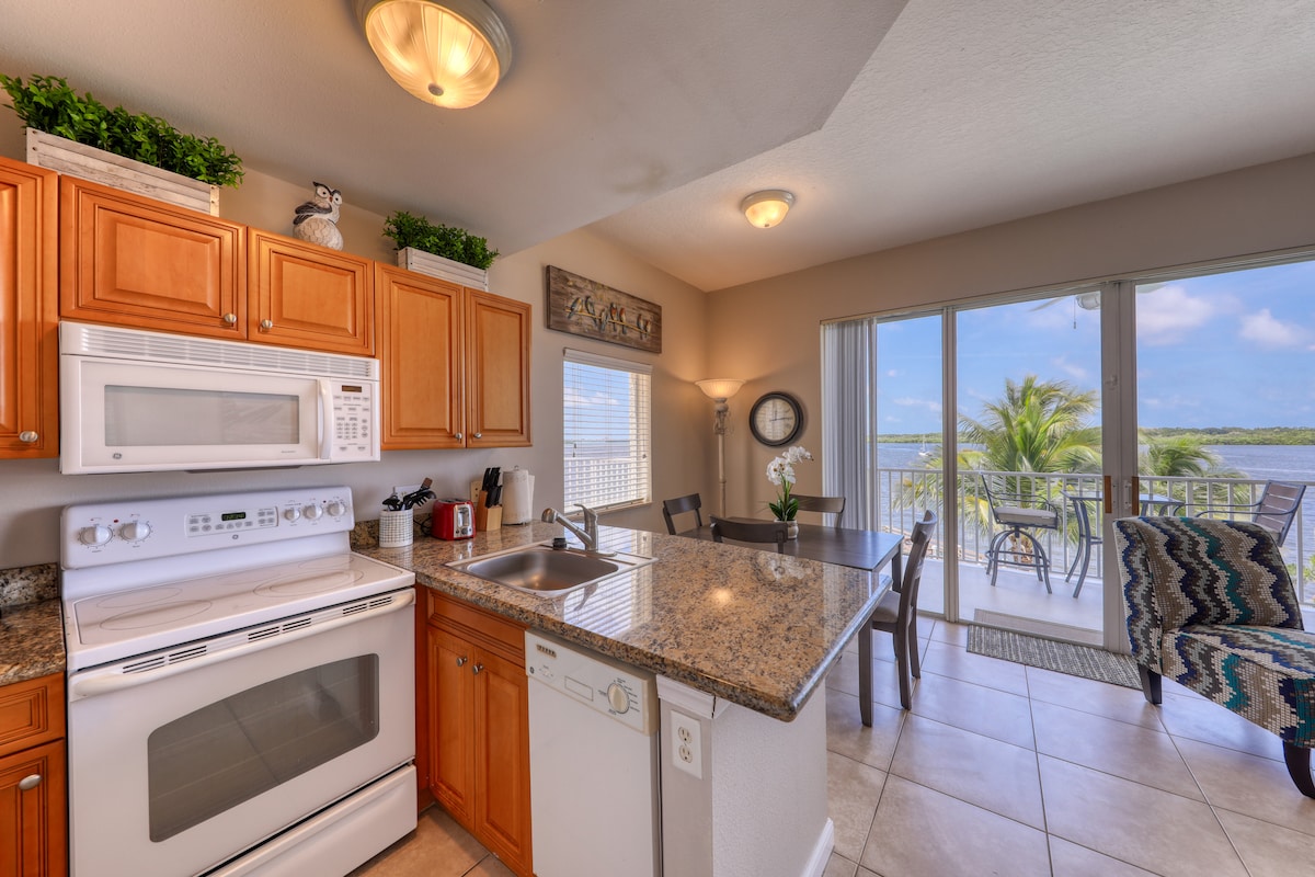 Menekülj ebbe a lenyűgöző vízparti luxuslakásba, amely mindössze pár percre található a strandoktól, üzletektől és éttermektől. Élvezd a látványos kilátást az öbölre a saját nagy erkélyedről, vagy lazíts a fűtött medence és a vízre néző gyógyfürdő mellett. ✨ Üdülőstílusú kényelmi szolgáltatások – Fűtött medence, gyógyfürdő, fitneszközpont és szabadtéri étkezőBBQ-kkal ✨ Kényelem – queen méretű ágy és kemény matrac, fürdőkád/zuhanyzó, teljesen felszerelt konyha, új mosógép/szárítógép kombinált egység ✨ Étkezés – Doc Ford's Rum Bar & Grill a szomszédban.