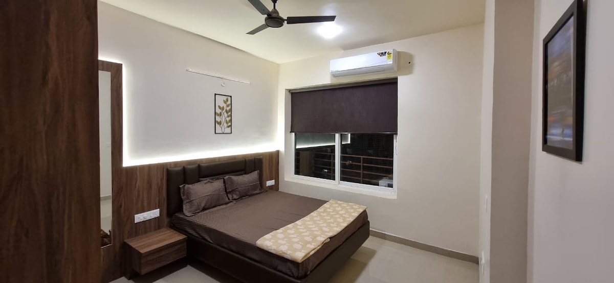 Hangulatos, független 2 Bhk lakás a legfelső (9. emeleten), amely otthonos környezetet kínál a szálláshelyeden eltöltött idődhöz. A lakásban 2 tágas hálószoba található, amelyek mindegyike légkondicionálóval van felszerelve a kényelmed érdekében. Két tiszta és jól karbantartott fürdőszoba van, amelyeket érkezés előtt alaposan kitakarítunk. Teljesen működőképes konyha áll rendelkezésre, amely lehetővé teszi, hogy saját magad főzd meg az ételeidet . Mosógépet is biztosítunk a kényelmed érdekében 13 ott platformhoz férhetsz hozzá, köztük a Hotstarhoz és a SonyLIV-hez