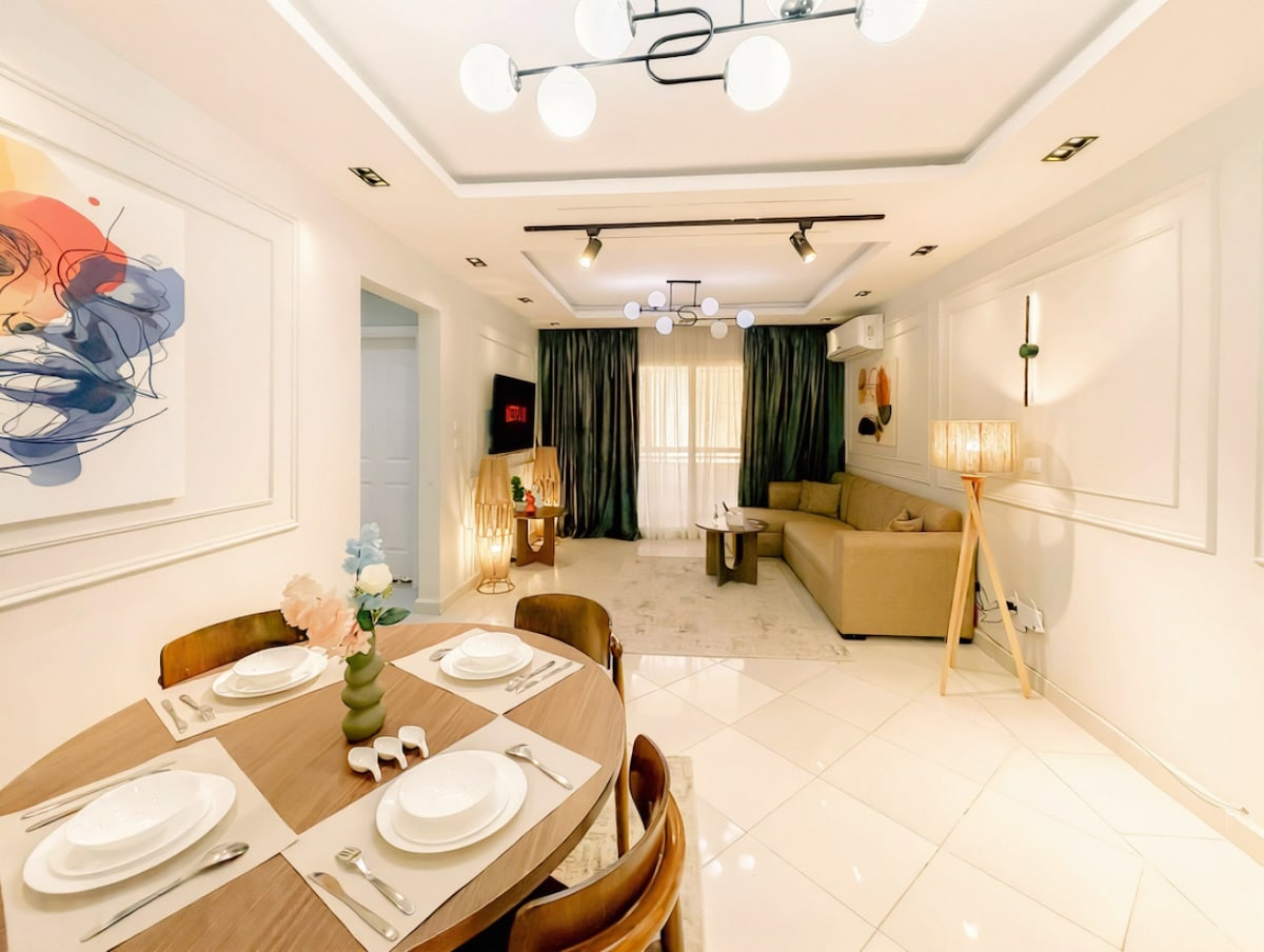 🌿 Üdvözlünk a luxusos Heliopolisz-otthonodban, egyedülálló kerti kilátással! Egy ritka gyöngyszem Kairóban, ahol a város közepén élvezheted a békés, zöld pihenést. 🛏️ Két hálószobás lakás – kényelmesen elfér benne akár hat vendég. 📍 Kiváló elhelyezkedés – könnyen megközelíthetők Kairó vibráló látnivalói és kulturális nevezetességei. ✨ Akár rövid, akár hosszú a tartózkodásod, garantáltan jól fogod érezni magad ebben a stílusos és kényelmes lakásban!