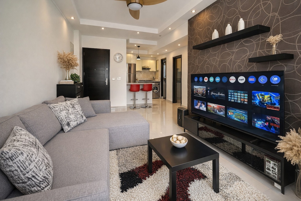Ez a tágas lakás teljesen berendezett, és mindennel fel van szerelve, amire szükséged van a kényelmes tartózkodáshoz. Pihenj és nézd meg kedvenc filmjeidet és tévéműsoraidat a hangrendszerben, ahol hozzáférhetsz a Netflixhez, a beING Sportshoz, a Shahidhoz, a Watch ithez és a Starzplayhez. Központi helyen található, közel a főbb látnivalókhoz. Csak egy rövid séta a buszpályaudvarhoz , az üzletekhez és az éttermekhez. Függetlenül attól, hogy üzleti vagy szabadidős célból utazol, ez a modern, stílusos lakás tökéletes szálláshely.