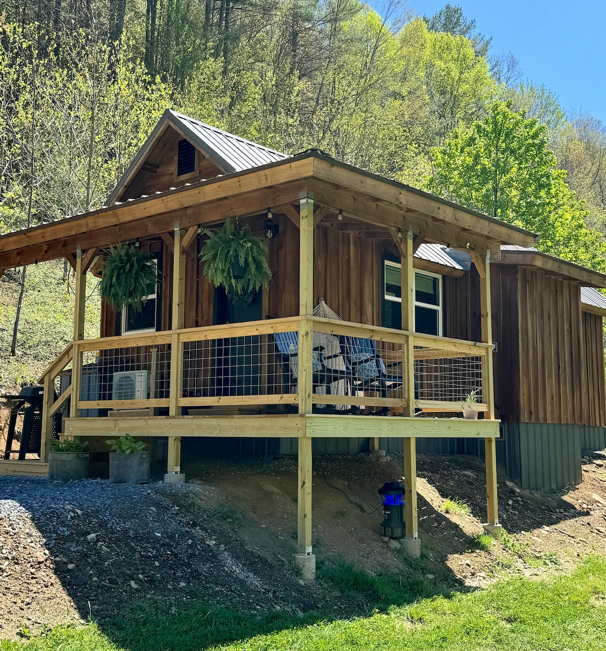 Modern tiny cabin with panoramic Blue Ridge views, set on a quiet hillside within our 10-acre retreat. Designed for rest, this private escape offers misty sunrises, forest sounds, and peaceful walking trails. Unwind overlooking the mountains, explore the land, or enjoy the calm of a space created for slowing down. Though secluded, you’re within easy reach of Marshall and Asheville. Perfect for couples or solo travelers seeking a serene, nature-filled getaway with comfort and privacy.