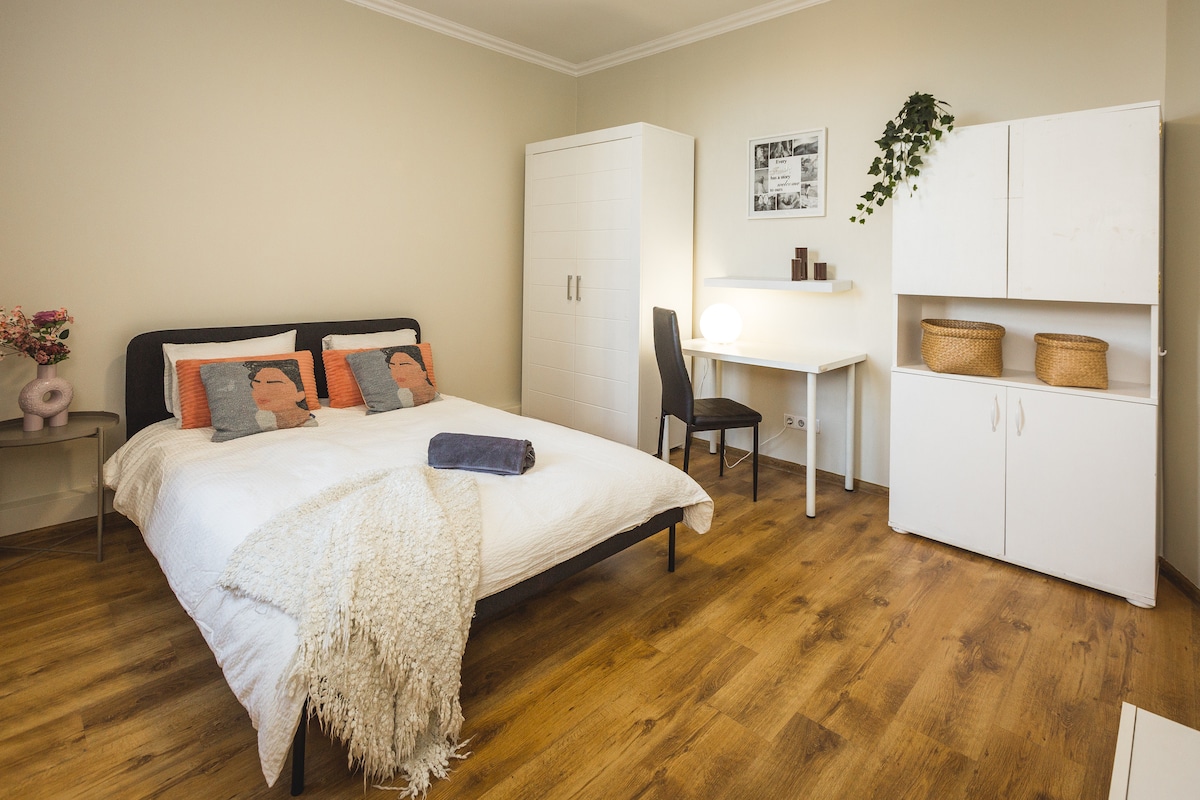 Perfect Four Bedroom Apartment in the City Center! 🌟 ★The bedroom windows overlook the courtyard - quiet and peaceful, even in the city center ★ Two Full Bathrooms – Ideal for convenience and comfort ★ Key-less entry – Digital lock, no keys needed ★ Quiet street with one-way traffic ★ Surrounded by cozy cafés and restaurants ★ Convenient and affordable parking just 5 minutes away Our hosts are always just a message away to assist with any needs.💛