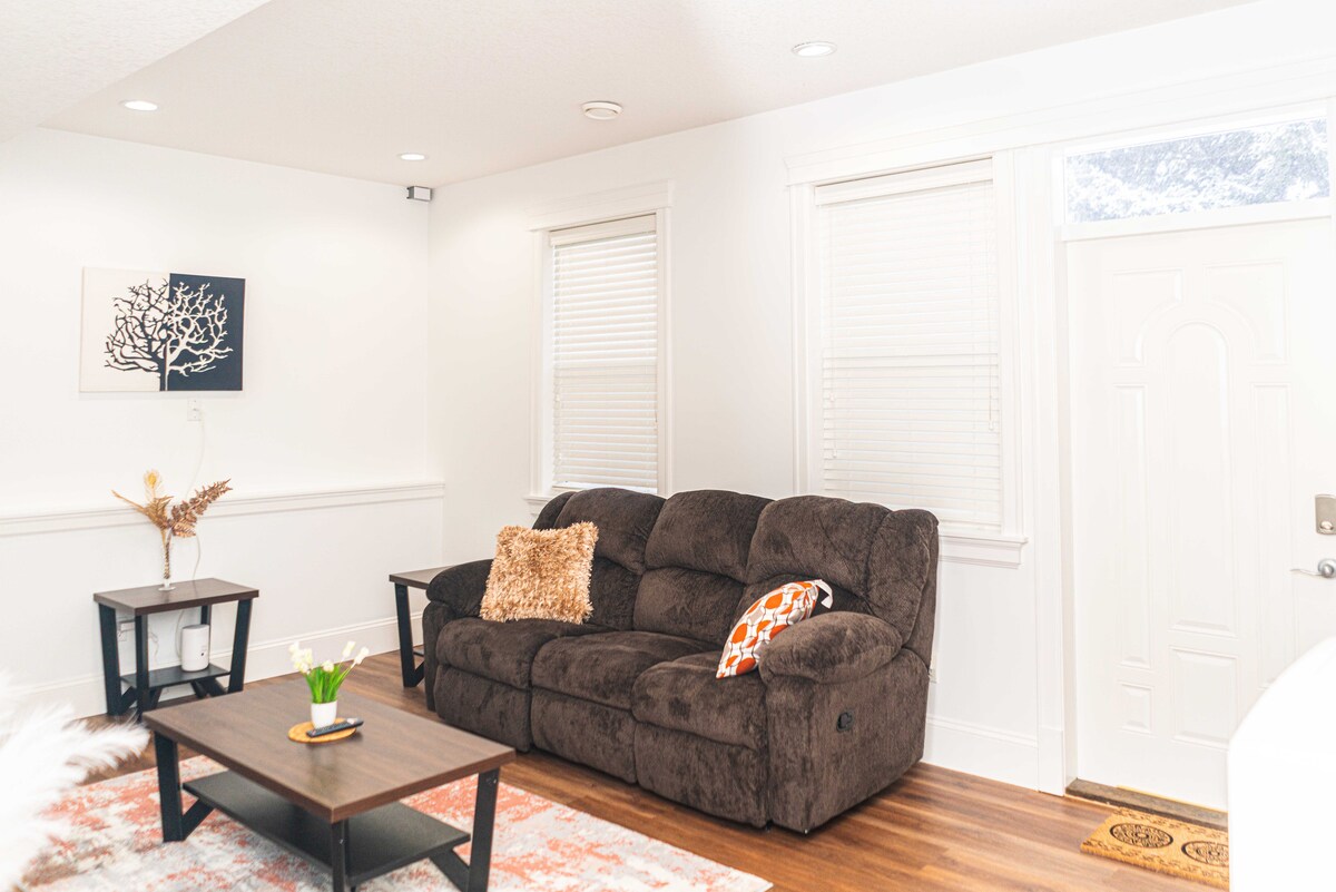 Működési engedély száma: 5033066 A Machleary Hideaway egy olyan hely, amelyet az otthonodtól távol is az otthonodnak hívhatsz. Úgy tervezték, hogy el tudjon szállásolni párokat, családokat, üzletembereket vagy barátokat, hogy jól érezzék magukat, miközben felfedezik a Nanaimót Teljesen berendezett, gázkandallóval, nagy tévével, Bluetooth-hangszóróval, töltőállomásokkal, teljes konyhával, két hálószobával, két fürdőszobával, irodaterülettel és kikötői kilátással. A dekoráció egyszerű, tiszta és rendezett. A magasságú mennyezetek nyitott és szellős hangulatot kölcsönöznek a helynek.