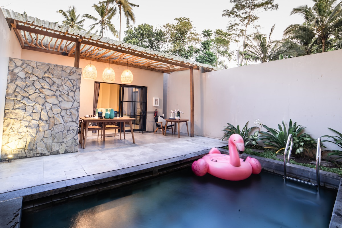 Saját medencével és félemeletes dizájnnal rendelkező villa az emeleten alvóhellyel, a földszinten pedig tágas nappalival és mini kamrával. Legfeljebb 4 vendéget tud elszállásolni, és pótágy is rendelkezésre áll. Egy összekötő ajtó áll rendelkezésre a szomszédos, azonos típusú villához. Csendes, mégis stratégiai területen található, közel Yogyakarta népszerű látványosságaihoz és kulináris helyeihez.
