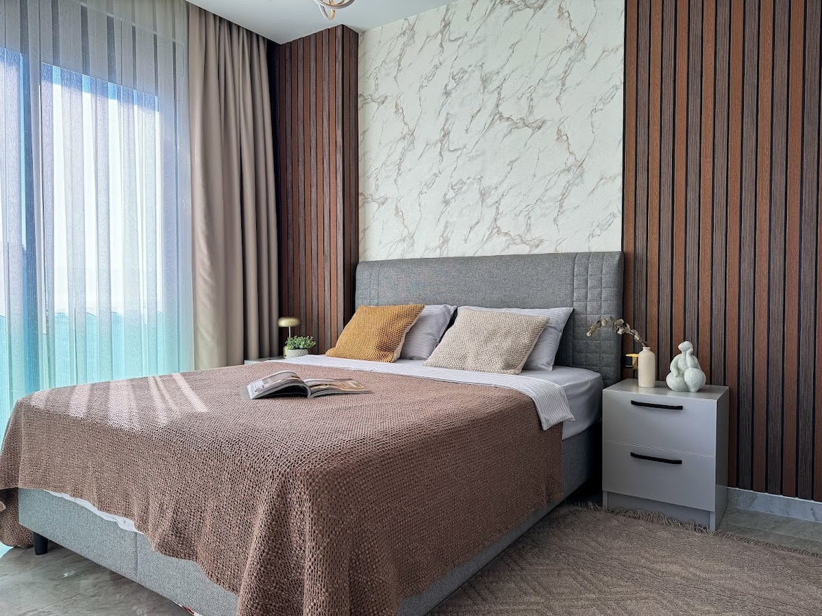 Hangulatos, 60 m²-es, 1+1-es lakás modern dizájnnal és mindennel, amire szükséged van az élethez. Egy 5. szintű infrastruktúrával rendelkező komplexumban található★: 24 órás biztonsági szolgálat, beltéri és kültéri parkoló, karaoke, mozi, PlayStation szoba, hamam, szauna, medencék. Minden, amit a pihenéshez és kényelemhez el tudsz képzelni, a rendelkezésedre áll. A lakásban minden kényelmi szolgáltatás megtalálható, a legmagasabb színvonalon.