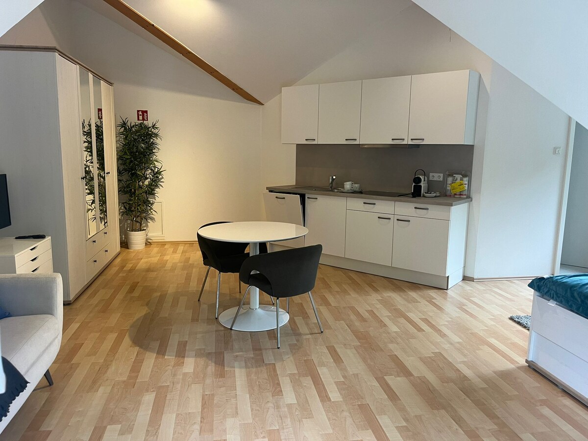 Welcome to homie stay am ring♥️ Our modern apartment building in the Frauenland district of Würzburg offers a total of 62 stylishly furnished studio apartments and is the ideal choice for business travelers, city breaks, or longer stays. Each studio has a fully equipped kitchenette, a modern bathroom, free Wi-Fi, and a smart TV. A special bonus is the free underground parking garage, which guarantees our guests a stress-free arrival and departure.