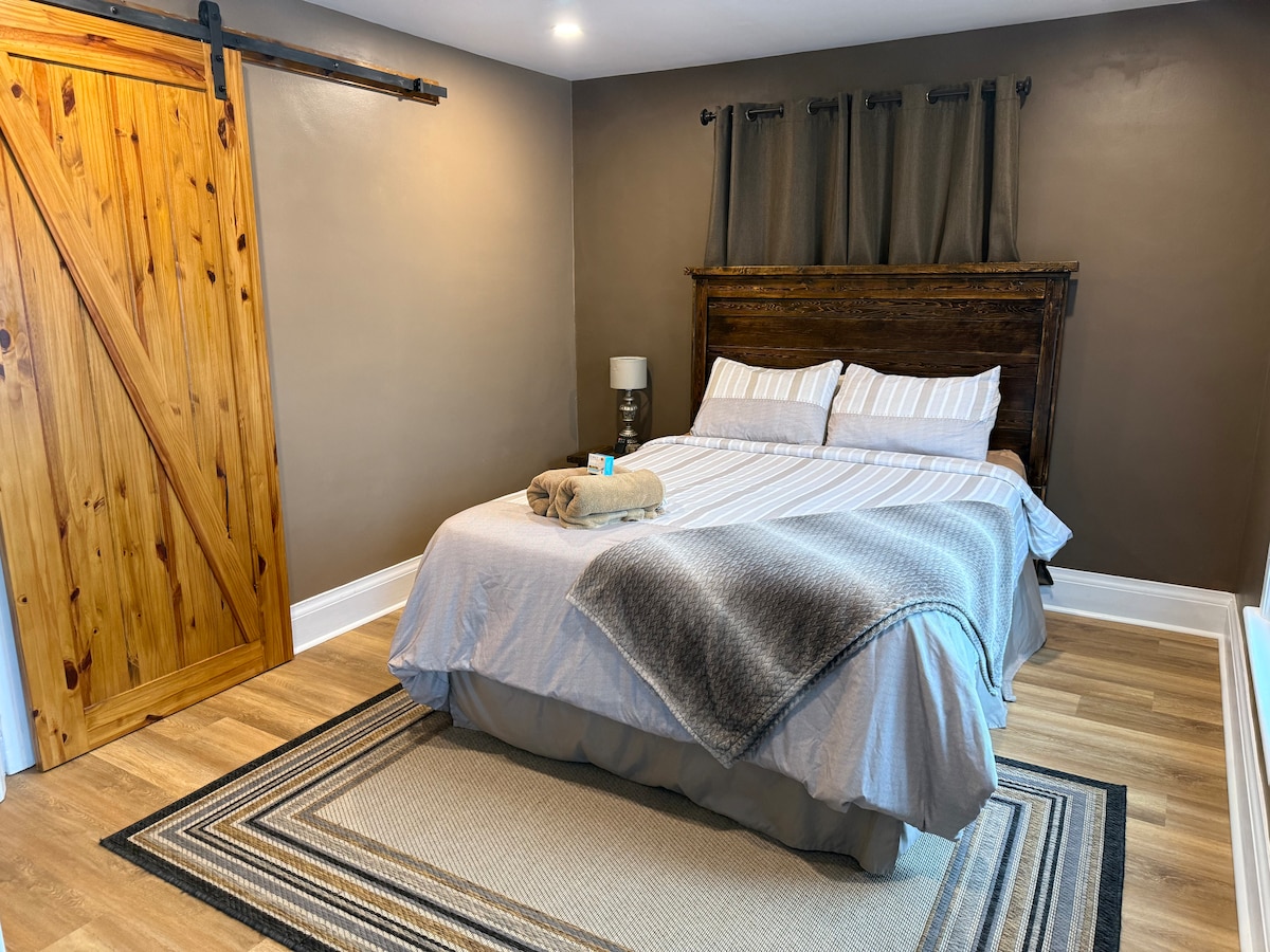 The Rustic Lounge features 2 bedrooms, 2 bathrooms, kitchen, dining area, and living room. Guests are encouraged to park their cars or boat under the carport on the property. Located just a 3-minute walk from downtown Brockville, this space is perfect for families or small groups looking to enjoy boating or fishing on the St. Lawrence River. *Winter Only* Rotary Park is just one block away and offers free public skating. (See listing photos for the skating schedule.)