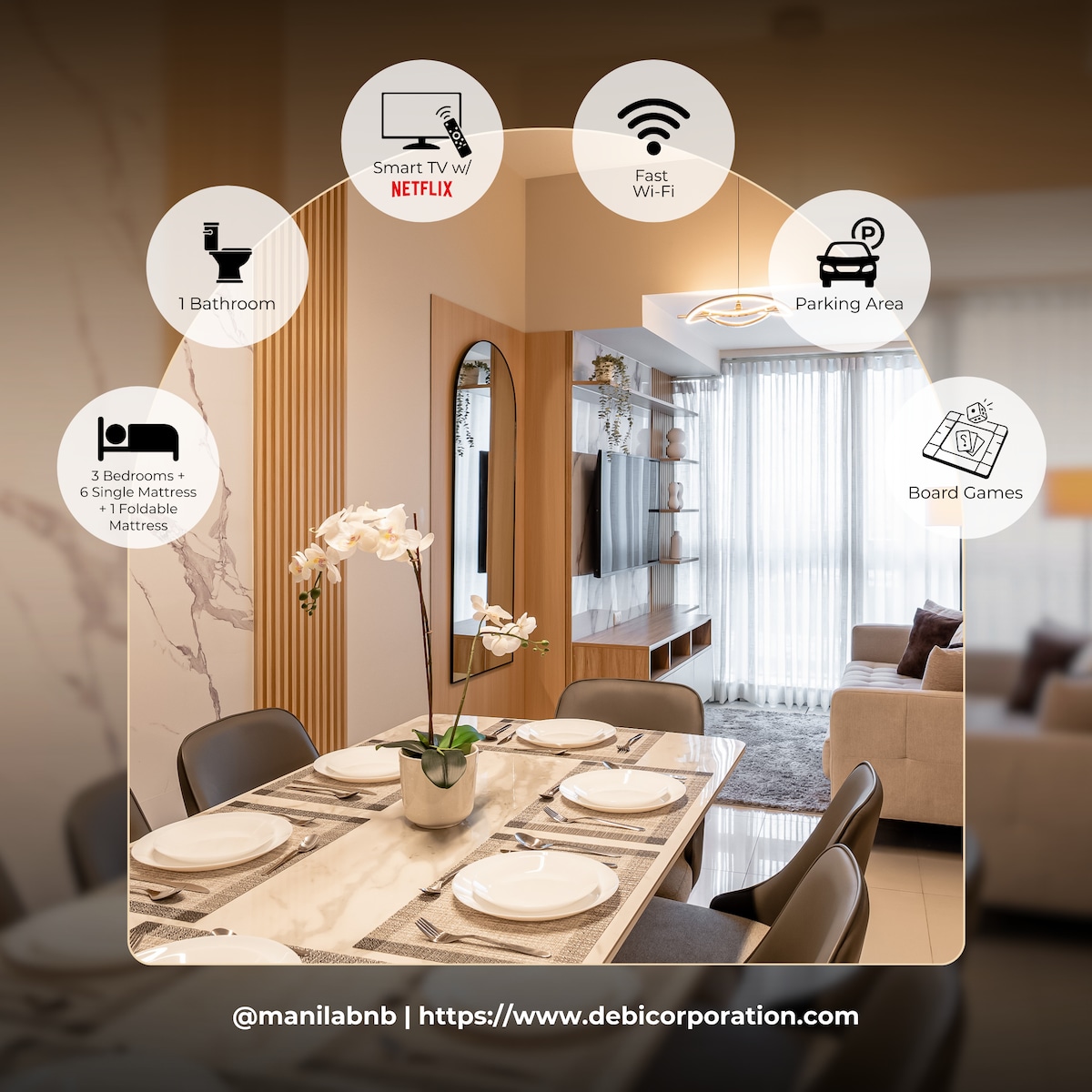 Elegant 3-Bedroom Condo in Uptown Parksuites