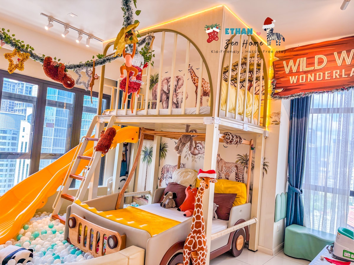 Wild Wild Wonderland, egy gyerekbarát, állat témájú szálláshely, ahol a gyerekek megismerik az állatokat, zoomolnak túl a csúszdán egy labdagödörben, és fedezz fel retro játékokat. A gyerekeket arra biztatjuk, hogy játsszanak független játékot, miközben a szülők hátradőlnek, pihennek és élvezik az ünnepeket. Bukit Bintangban, Kuala Lumpur városának szívében találhatóunk, közel több mint 40 látnivalóhoz. Egységünket minden vendég érkezése után fertőtlenítjük a családod kényelme érdekében.