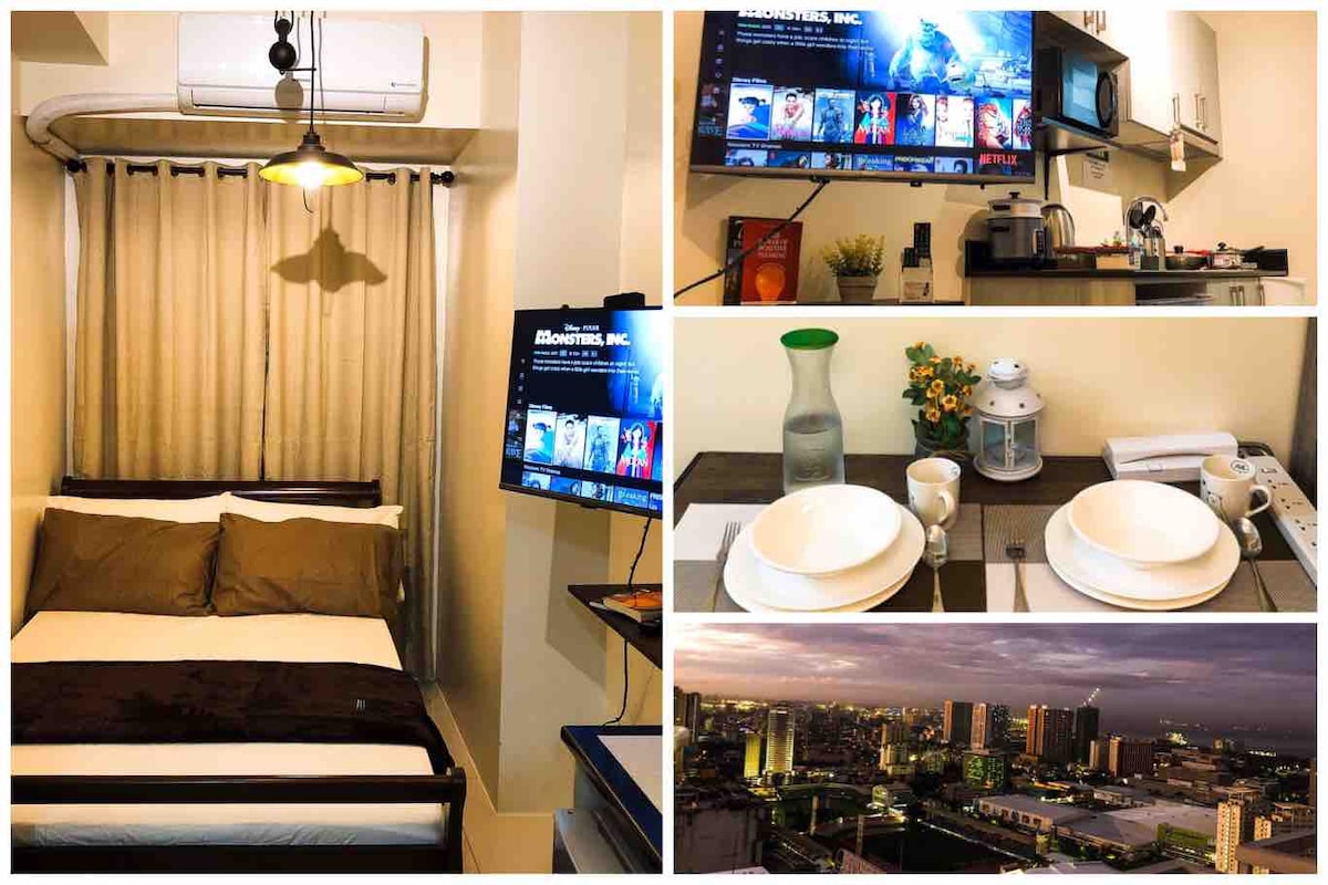 Az egység a Birch Towerben található, a 47. emeleten. A kilátás fantasztikus. A szoba 24 négyzetméteres stúdió típusú, 160 méterre az utcától, erkélyes. Használhatod az úszómedencét, az edzőtermet és a szaunát. A szobában osztott típusú légkondicionáló van. 65 hüvelykes ívelt okos 4k TV Netflixszel és más filmalkalmazásokkal, hogy pihenhess és élvezhesd a kedvenc filmjeidet. Jobb, mint gondolnád. Biztonság éjjel-nappal. A torony 50 méterre van a Robinson Place Manilától, egy hatalmas bevásárlóközponttól. A Manila-öböl 10 perces sétára található.