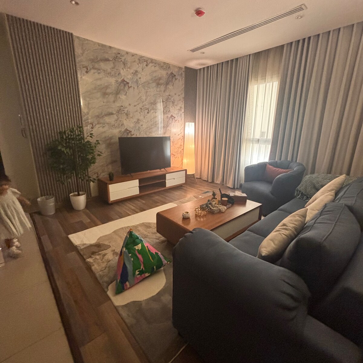 Kényelmes apartman, amely egy nagy ággyal rendelkező hálószobából és egy nappaliból áll, kényelmes kanapéval és 50 hüvelykes képernyővel (Shahid, YouTube Premium). Konyha minden eszközzel felszerelve (sütő, hűtőszekrény, mikrohullámú sütő, vízforraló, tea és kávé). Fürdőszoba (sampon, szappan, fogkefe és fogkrém, hajszárító, fürdőköpeny, hajszárító, törölközők egyszer használatosak) Nagy sebességű internet Önálló bejelentkezés Privát parkolók az épület alatt
