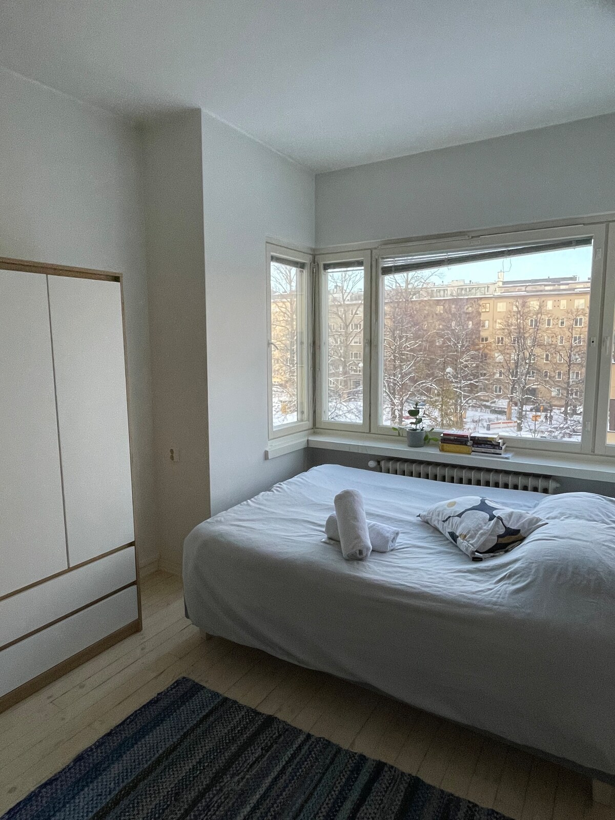 Egy hálószobás lakás erkéllyel, 200 m-re a Pasila állomástól és a kiállítási központtól. Meleg parkolóhely az alagsorban. A szomszédos Tripla bevásárlóközpont átfogó szolgáltatásai. Az ágynemű és a törölközők, valamint a tea/kávé is biztosított. Mosógép a konyhában. Felhívjuk a figyelmedet, hogy 26.04.01-02. hétköznapokon 07-17 óráig csendes felújítási zaj lehet (a ház másik végén, nem ebben a lakásban, még csak nem is ugyanabban az épületben). 26.04.03-04. felújítás van a szomszédos épületben, így a zaj nagyobb. Hétköznapokon vízszünet lehetséges. Hétvégén nincs zajterhelés.