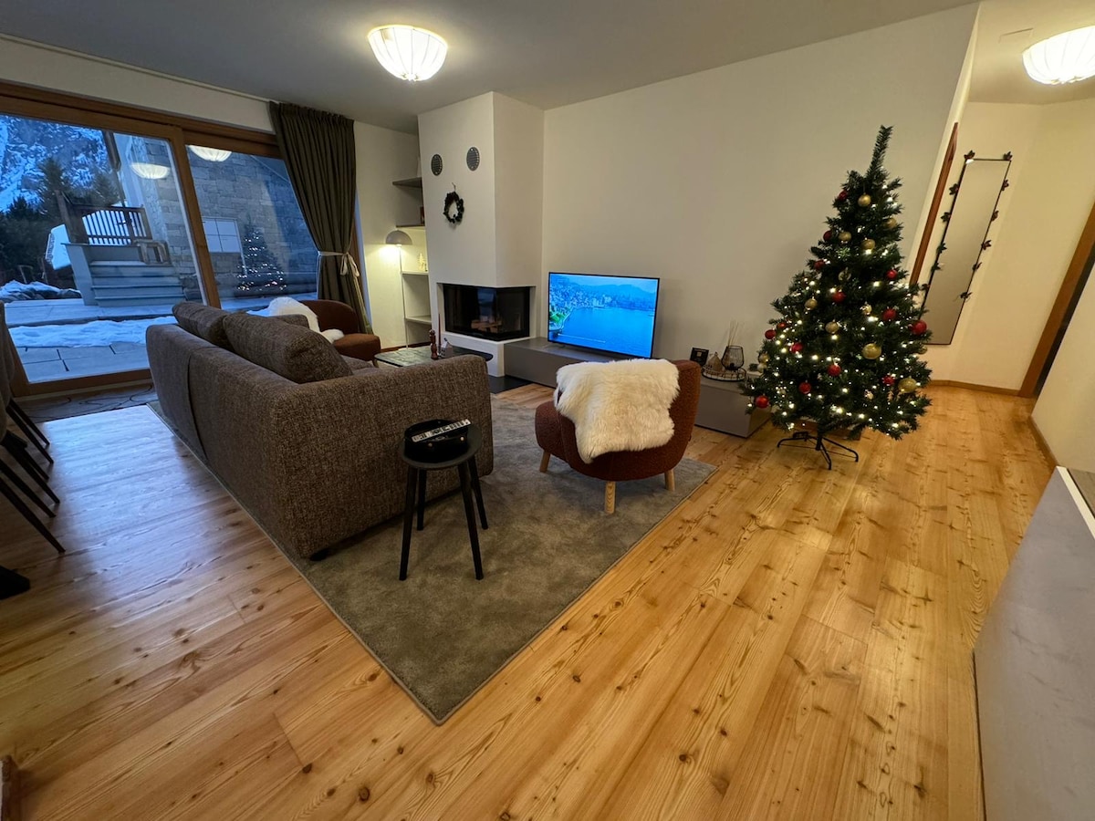 3 1/2 Zimmer Ferienwohnung im Obergeschoss, riesiger Wohnraum, Terrasse, Aussicht. 2 Schlafzimmer, das grosse mit Doppelbett, das kleine als Gästezimmer mit Normalbett. Zentral gelegen und doch sehr ruhig, Parkgarage um die Ecke, Infrastruktur in Minutenreichweite. Golfplatz, Mineralbad, Flugplatz und jede Menge Wanderwege. Erholung für 2 - 3 Personen, WLAN, Sat-TV, Espressomaschine mit Gratis-Kaffee. Kontakt in Italienisch, Deutsch, Englisch, Französisch, Spanisch oder Romanisch.