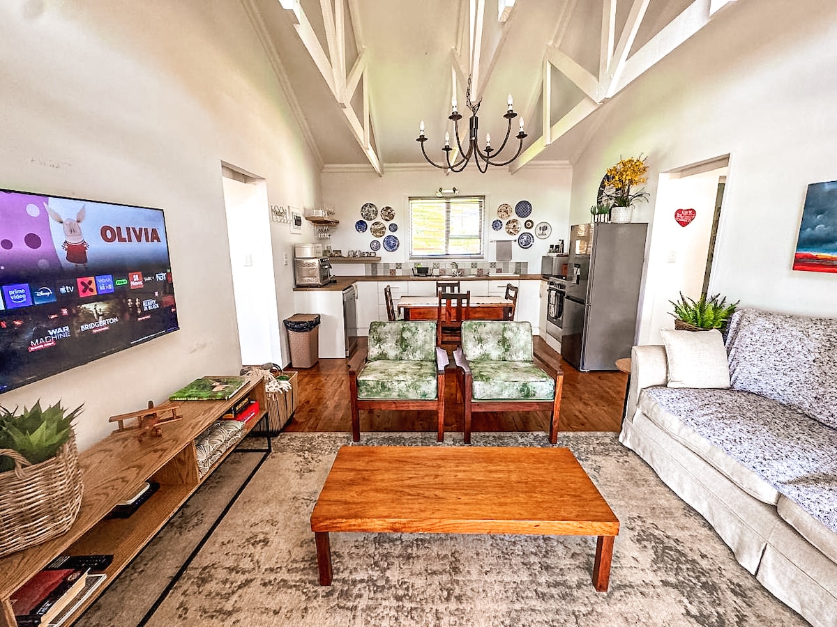 Lenyűgöző ház ragyogó, természetes fénnyel. Folyóparti, völgyek és hegyek látványa. Két nappali, mindkettő DS-tévével, hogy egyszerre sportolhass és főzhess! Mindössze 6 percnyi autóútra vagy a Clarens Square-től és 26 étteremtől, mégis teljesen ellazulhatsz a szél és a napsütés nyugalmában. Imádnivaló séták. Elektromos takarók és fatüzek, teljesen felszerelt konyha, 4,5 fürdőszoba 6 hálószobához, köztük egy 4 emeletes ággyal. Hatalmas, de otthonos.