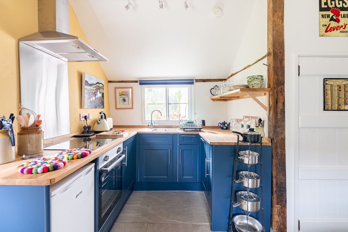 Comfy, private Barn studio, with direct access to Malvern common. Perfect for couples, dogs welcome. Close to the showground and walking distance from a good pub. Continental breakfast provided, flexible check in, contact host for details. The Malvern Hills is an area of outstanding natural beauty, perfect for country walks and bike rides. Great Malvern is filled with boutique shops, has a renowned theatre, great pubs and is close to the Cotswolds and Cheltenham.