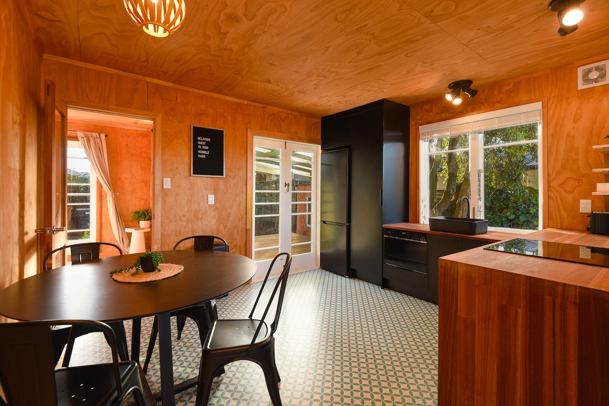 Centrally located, with elevated views. Your space is completely detached, with full privacy, carpark, lockbox entry. Making for the perfect spot for an intimate boutique feel get away. Tastefully designed modern lockwood/rustic chic complemented with rich textures in mind. Coffee & tea selection is provided within your room for your stay. Thoughtfully equipped appliances - kettle, toaster & microwave for your convenience. However no full kitchen cooking facilities.