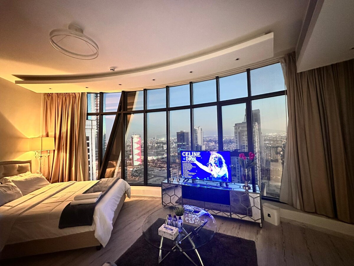 Ébredj lélegzetelállító naplementére és kilátásra a városra. A 35. emeleten található hangulatos és modern lakás a meleget, a stílust és a kényelmet ötvözi gyönyörűen megtervezett belső terekkel és átgondolt részletekkel. Ez a modern szállás Manama városában található, kevesebb mint 15 percre a város vibráló kultúrájától, piacaitól, vízparti kávézóitól, kulturális látnivalóitól, legjobb éttermeitől és pezsgő éjszakai életétől. A lakás a város zajos része felett van, és tökéletes egy békés kiruccanáshoz!