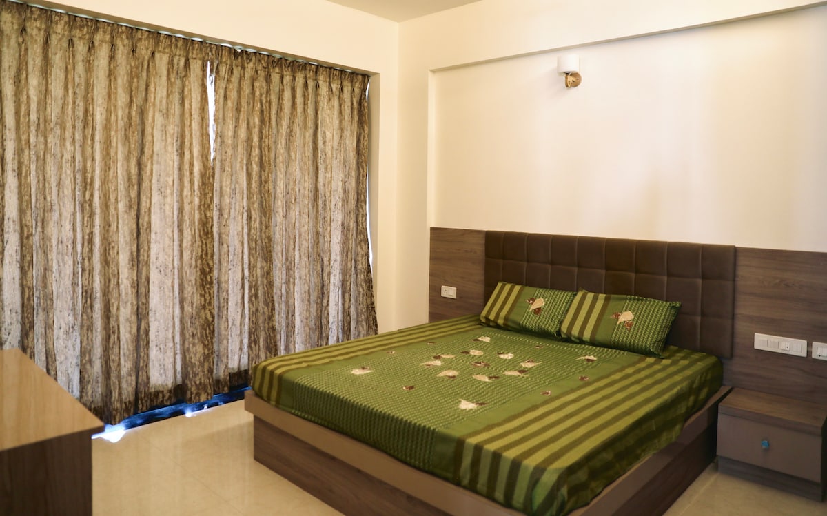 Luxury 3 BHK Family Retreat Experience a blend of city convenience and peaceful living in our spacious 3 BHK apartment. Specifically curated for families seeking a premium "home away from home" experience. Available only for families. The Space 3 Airy Bedrooms: Spacious and well-ventilated for restful nights. 3 Modern Baths: Clean, contemporary, and fully equipped. 3 Private Balconies with natural light and fresh air. Modular Kitchen: Fully equipped for all your home-style cooking needs.