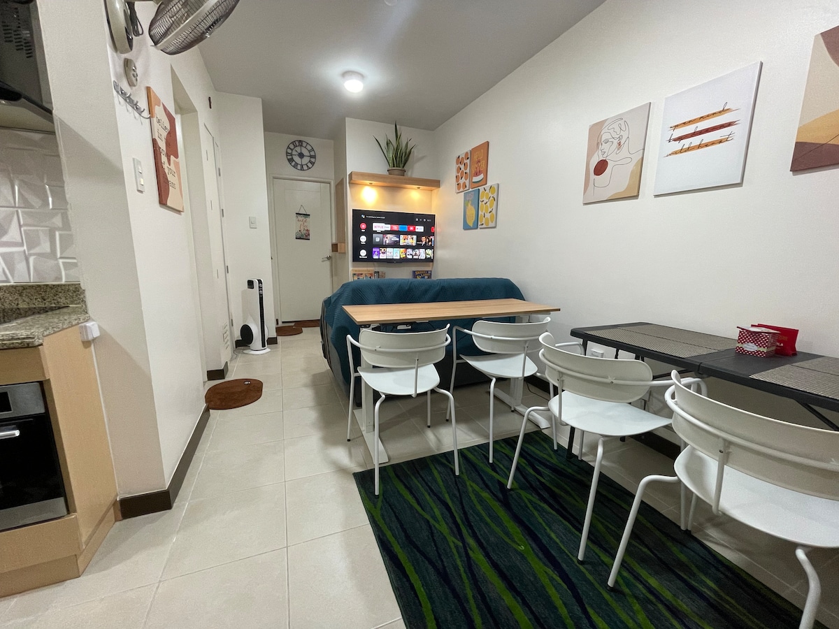 PLEASE READ BEFORE BOOKING 🩷 The Cozy Studio is a fully furnished unit with aesthetic vibes & soothing ambience. It is ideal for relaxation, romantic dates with your love one, movie night with your bestie or spending some time alone. It has fast wifi, perfect for Netflix and chill or K-Drama marathon. Get comfy with Fresh Bedsheets, Pillowcase and Blanket all night. Kitchen may be small but it has your basic needs for cooking. Bathroom is equipped with shower heater for relaxing shower.