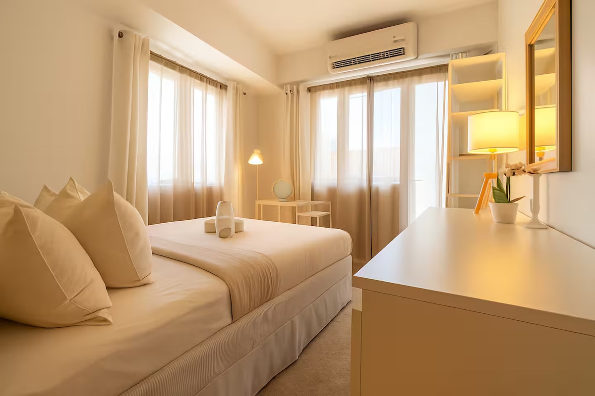 Modern és tágas 1Br erkéllyel és medencével, mindössze néhány kilométerre a repülőtértől, és sétatávolságra a Manila-öböl számos látnivalójától. Jól felszerelt konyha, napfényes nappali, kényelmes ágy, Wi-Fi, Netflix, légkondi és tévé a nappaliban és a hálószobában egyaránt. Tökéletes szálláshely pároknak, kis családoknak vagy üzleti utazóknak. Szauna és játszótér gyerekeknek – ingyenesen használható Medence – három vendégnek ingyenes; minden további vendég után 200 FJ.