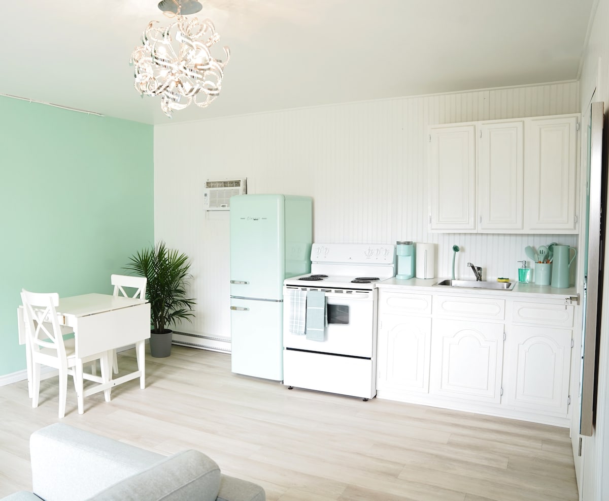 Üdvözlünk a The Rosé Beach House Julie Ann lakosztályában! Az 1960-as évek Kaliforniája ihlette egy „Retro Chic” motel vagyunk, amely közvetlenül a Winnipeg Beach Boardwalkon található. Az utca túloldalán található a híres Winnipeg Beach, valamint számos üzlet és étterem - az RBH a kedvenc nyári úti célod. Lakosztály: 2 queen méretű ágy Légkondicionált konyhai zuhanyzó/fürdőkád TV /Living Space Wifi Keurig kávéfőző