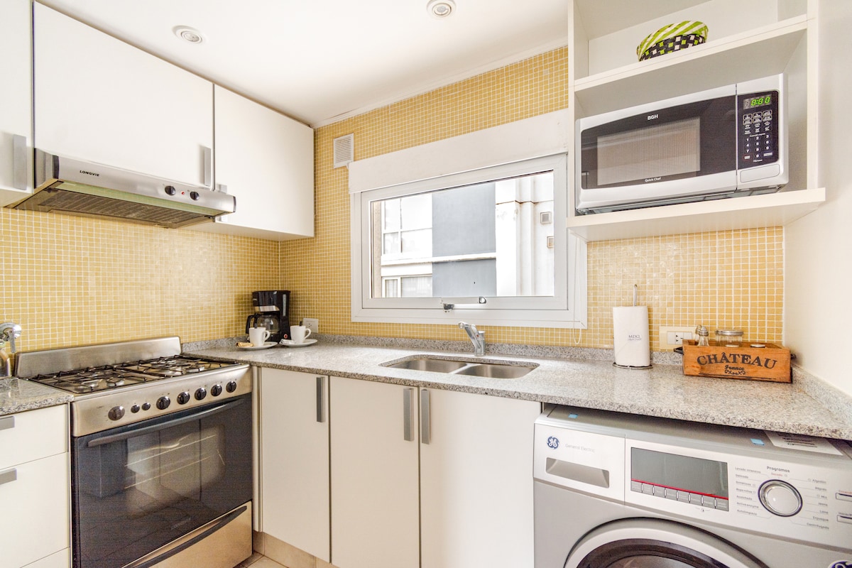 Luxury flat. Best area in the city. Air conditioning and Central heating. 100% connectivity 300 MB. Coffee station. Balcony with a city view. Near the beach (10 blocks ) and close to an exclusive shopping centre, park and Historic Houses. (1 queen bed or 2 twin beds). 100% Connectivity 300 MG. 2 TVs Air condition and central heating. Office space. Laundry. Surrounded by restòs, coffee shops and bars all around. ATMs around. Full equipped kitchen and bathroom. Terrace & city view. Free WiFi .