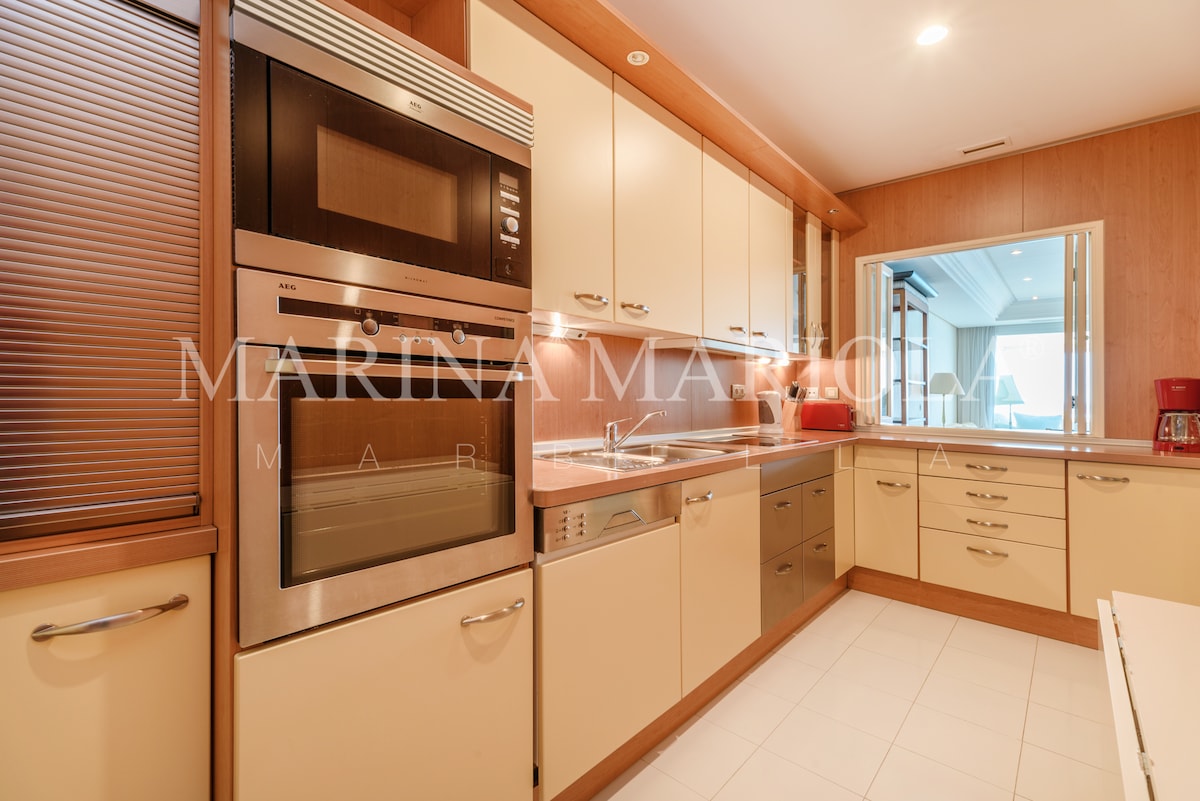 Gyönyörű tengerre néző apartman az egyik legexkluzívabb komplexum Marbella. 2 hálószoba, 2 fürdőszoba, nappali Smart TV-vel és ingyenes Wi-Fi-vel, teljesen felszerelt konyha és korlátlan kilátás nyílik a tengerre. A komplexumban 24 órás biztonsági szolgálat, parkoló, felnőtt medence, gyermekmedence, jacuzzi és fitneszközpont található. Gyalogos távolságra található mindenféle létesítmény, mint például szupermarketek, kávézók, éttermek, strand klubok, Starbucks, stb.