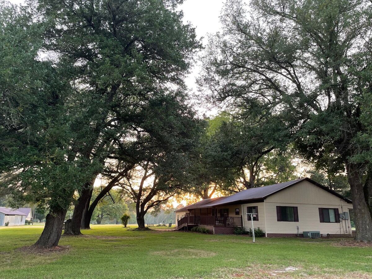Nyugodj meg ebben az egyedi és nyugodt kiruccanásban. „Made in the shade” 1950, 2 hálószobás, 1,5 fürdőszobás otthon gyönyörű árnyékkal, farm bájjal és eredeti keményfa padlóval borított karakterrel. Csendes környék, szép hátsó udvar, pihentető hátsó veranda szép kilátással a tóra. Hozd magaddal a horgászfelszerelésedet, és próbáld ki a szerencsédet. 415 Estates és Tree Haven esküvői helyszín, butik, régiségbolt, étterem 15 percen belül. Kerekesszékkel rendelkező szálláshelyek. Háziállatbarát, további 50 dolláros háziállatdíjjal.