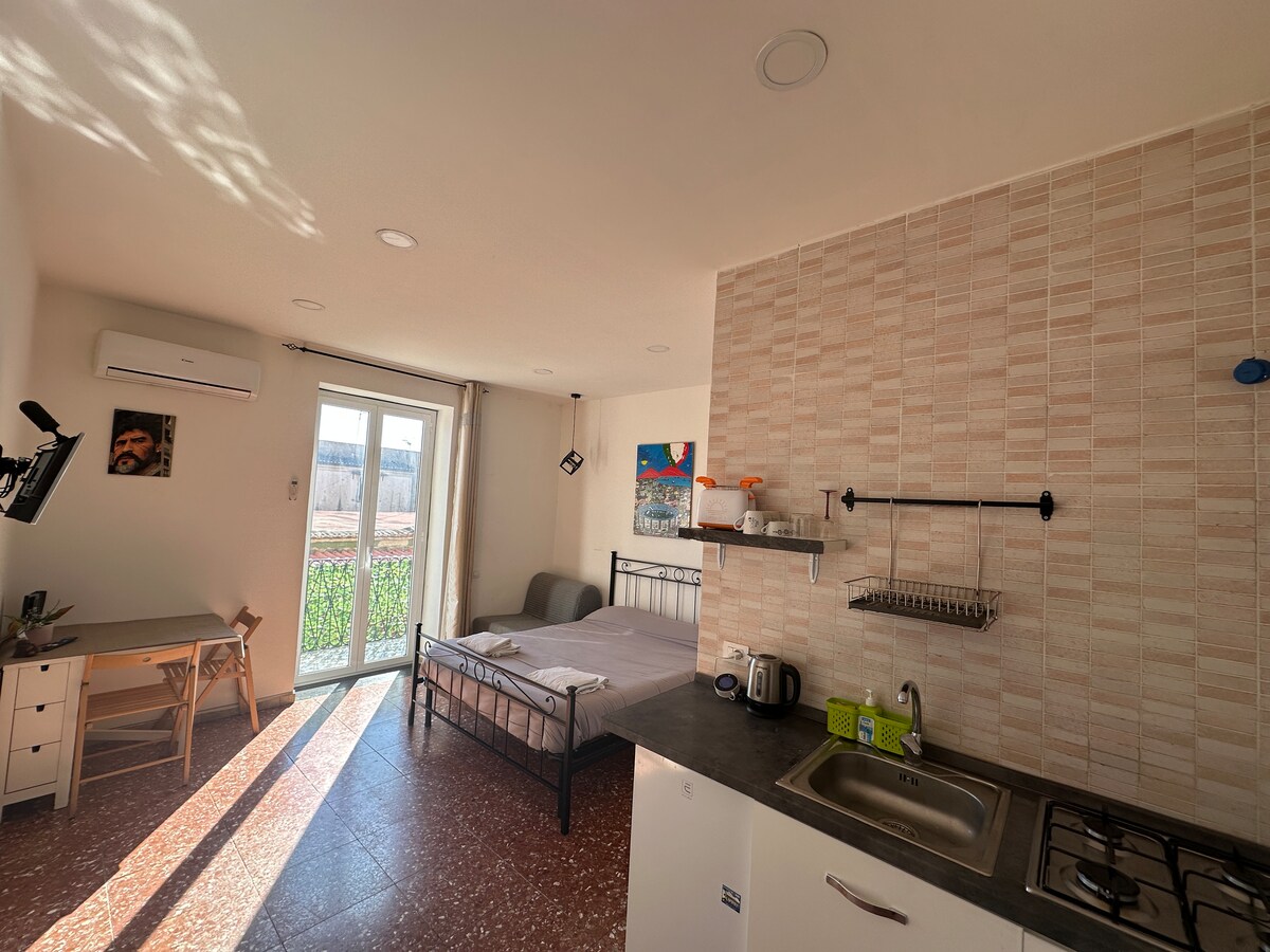 Rilassati in this quiet and elegant oasis, immersed in the National Park of Vesuvius surrounded by a splendid olive tree. The allotment is an independent vesuviana town, with lake view, of 30 mq2 and has: - a matrimonial letto; - a splendid eastern patio, - cooked attrezzata di tutto; - sofa, pranzo set and smart TV 32; - a bath with large shower facilities; - eastern patio; -condivided swimming pool and video streaming; - parcheggio chiuso e privato.