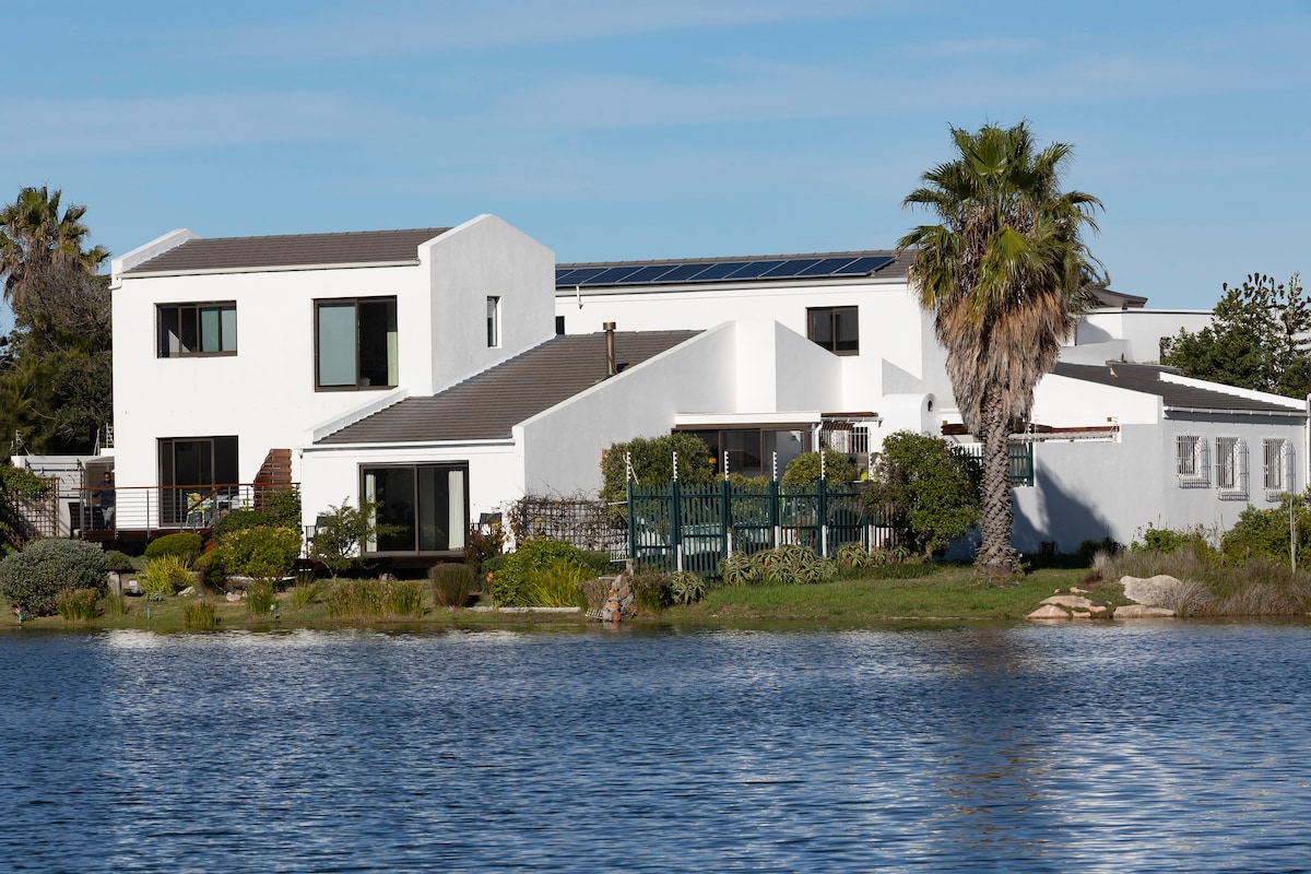 A private and peaceful retreat right on the water with abundant birdlife and an occasional otter. The home is beautifully appointed with everything you need for a comfortable and relaxing stay. Freely explore the estuary by pedal boat and kayak right from the private deck or drive to the nearest beach (2.8km) or the famous Surfer's Corner (3.9km). Self-check in and secure parking right at the front door. Solar generation and 30 KWh power backup.