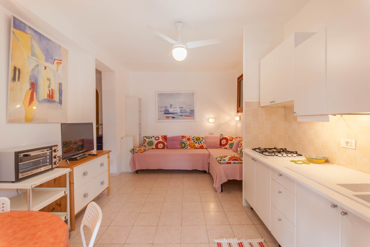 Kis és aranyos függőség két ember számára. Mindössze 2 perc sétára találod magad a tengertől, ahol ingyenes parkolási lehetőség van a nagy és csendes kertünkben. Marina di Campo legszebb és legjellegzetesebb részén, bárokban, éttermekben, üzletekben , minden kényelmesen gyalogosan . Stúdióapartman, amely franciaágyból, nagy szekrényből, Smart TV-ből, légkondicionálóból, zuhanyzós fürdőszobából és teljes teakonyhából áll. Független bejárat a kertből nagy szabadtéri térrel, ahol ehetsz.