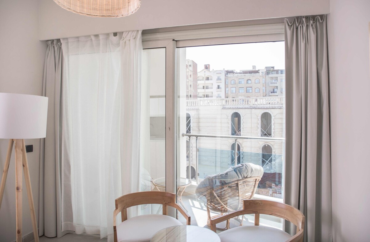 Ebben a stúdióban a meleg és pihentető légkör garantáltan csökkenti a stresszt és a szorongást. Lazíts a nap végén. Halkítsd le a fényeket, hallgass zenét, húzd vissza a lepedőidet, és tedd különlegessé a lefekvési idődet. Modernül berendezett stúdió apartman lélegzetelállító kilátással a medencére az 5. emeleten. Al-Dau Heights egy fantasztikus lakókomplexum, nagyon közel a turisztikai sétányhoz.