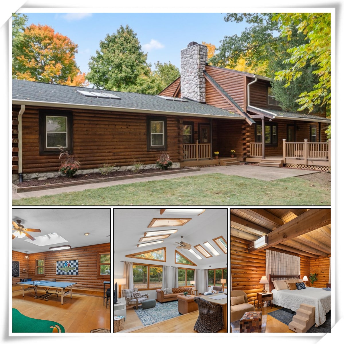 Rustic meets modern in this pet-friendly log cabin on an acre lot. Located in an established quiet and family friendly neighborhood perfect for families, friends, or group getaways. Provides 4 bedrooms, 3.5 baths, a game room, fenced yard, and a dog door. Enjoy cabin charm just minutes from Downtown, Broad Ripple, and the Northside’s best dining & culture. Relax, explore, and feel at home in the city’s most unique retreat. ✅ 8 min to Broad Ripple ✅ 14 min to Downtown ✅ 25 min to Grand Park
