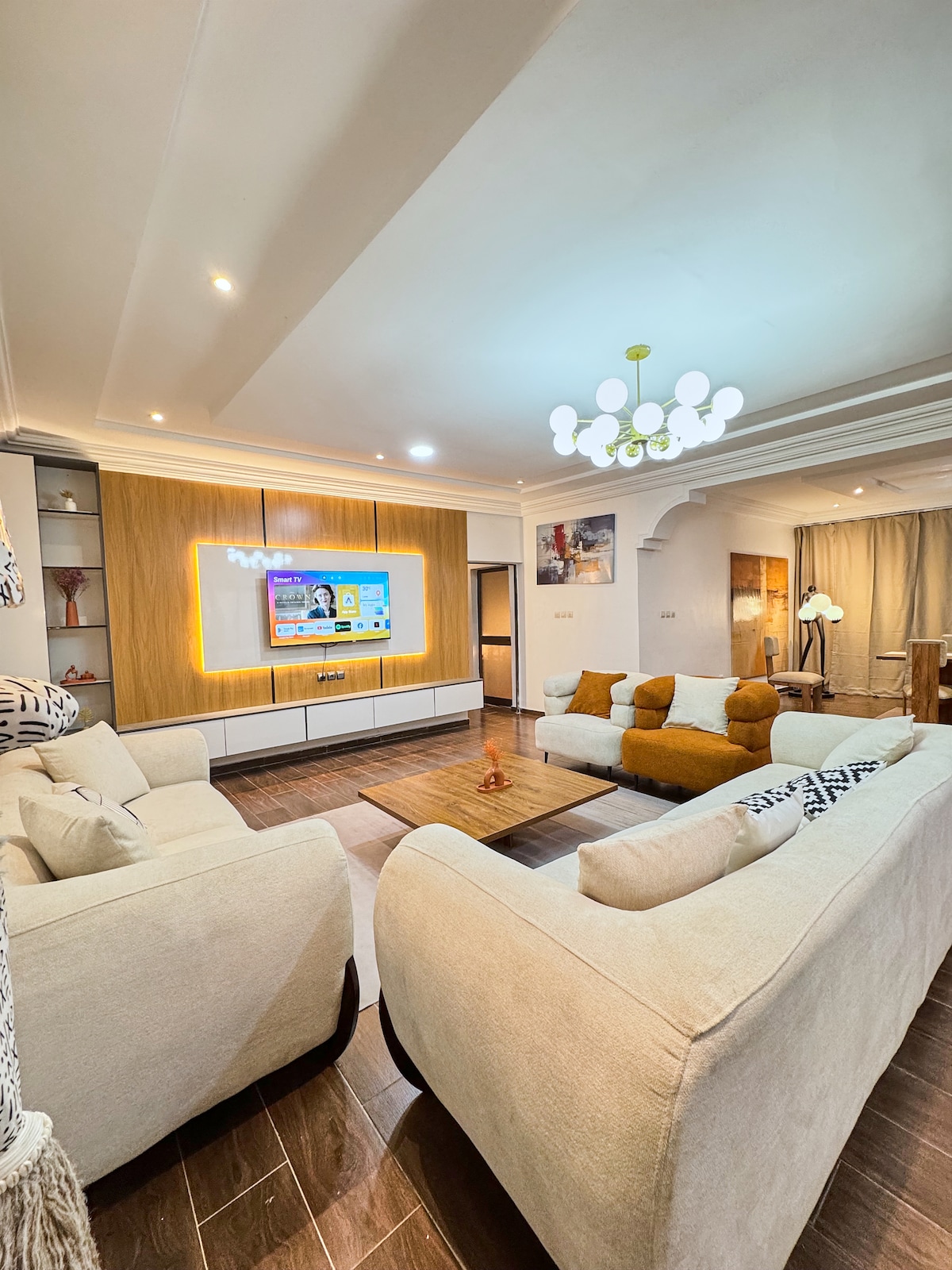 Bienvenue à Villa Médicis, où chaque détail inspire le confort et l’évasion. Un salon lumineux, trois chambres apaisantes, une cuisine moderne et une terrasse douce comme une soirée d’été. Détendez-vous, projetez vos films sur les écrans déroulants et vivez une parenthèse raffinée au cœur de Lomé. Ici, tout est pensé pour transformer votre séjour en véritable expérience.