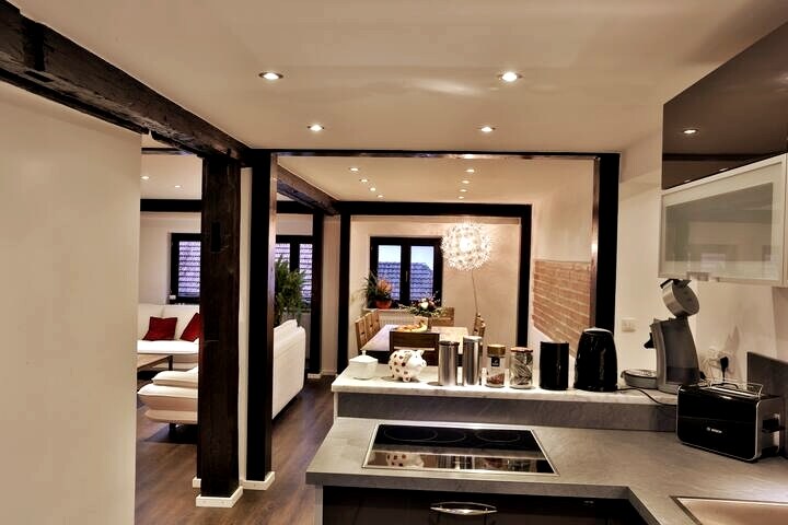 Luxuslakás egy 500 éves tanyán Nagy, exkluzív apartman (157 m2) történelmi bájjal és modern kényelmi szolgáltatásokkal: 250 Mbit-es nagy sebességű internet, Netflix és Prime Video Szauna, fatüzelésű kályha, beltéri és kültéri grillező, asztalitenisz, darts. 185 négyzetméteres kert Vess egy pillantást a Sunshine apartmanunkra (ugyanabban a házban, 121 négyzetméter, 6-7 fő elszállásolására) – kiváló értékelésekkel: 5,0/5,0 az Airbnb-n és 9,8/10 a FeWo-direkt-on. Sajnos. Kattints a profilképre, majd kattints újra.