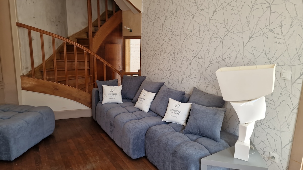 Kis bájos parasztház a Reims-hegy szívében, a pezsgő szőlőültetvényei között. Ez a szálláshely a bejáratnál a legrégebbi parasztház a faluban található, mintegy 25 km-re Reims, 10 km-re Epernay, 15 km-re Hautvillers és 5 km-re Ay, a szülőhelyén Champagne. Lesz egy körülbelül 70m² -es, két szinten, minden kényelmi enni és pihenni (felszerelt konyha, TV, kandalló, grill, kerékpárok, wi-fi). Állj meg a borúton, gyere pihenni!