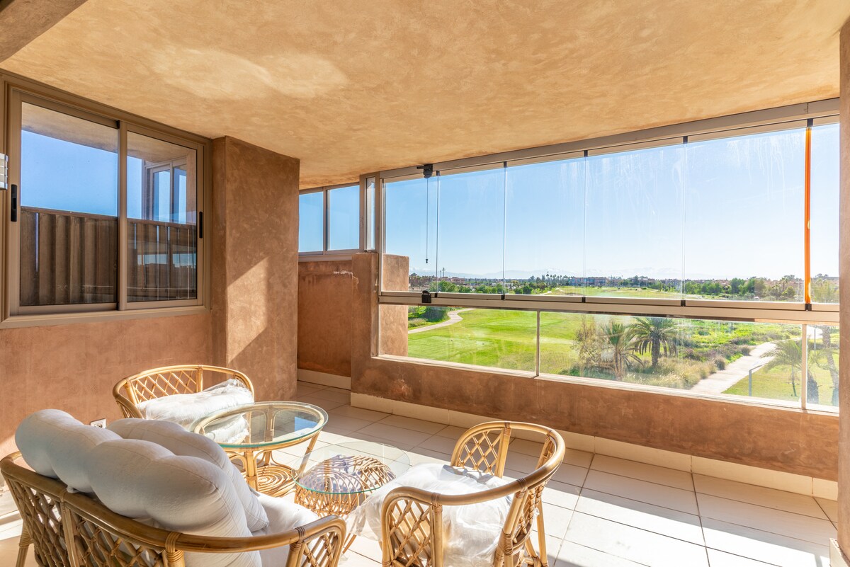 Kényelmes 2 hálószobás lakás, kilátás a golfpályára és központi elhelyezkedés