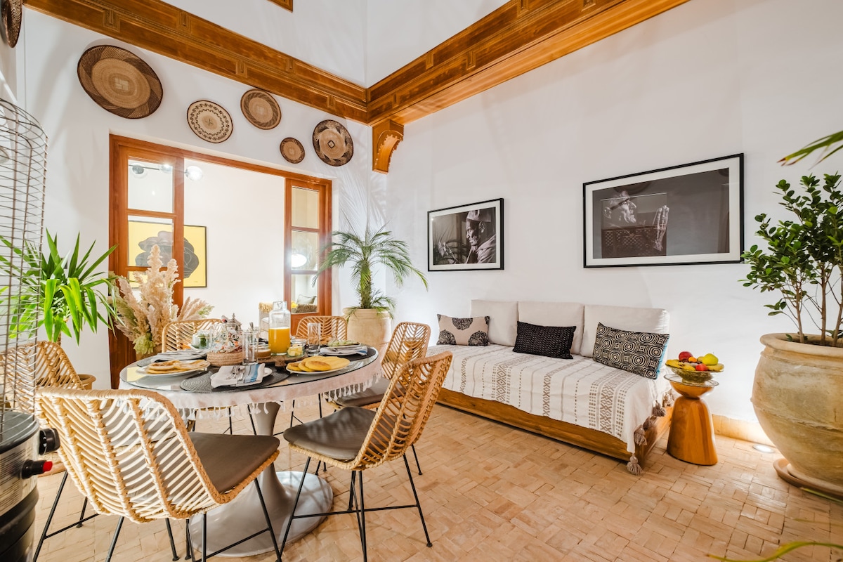 Stay in a modern and comfortable riad designed for a relaxing experience in the heart of the city. Free Moroccan breakfast is included every morning, with fresh local specialties, coffee, and mint tea to start your day. For your comfort, daily housekeeping is also included at no extra cost during your entire stay, keeping the riad clean and welcoming. A perfect place to enjoy a modern riad experience with authentic Moroccan hospitality.