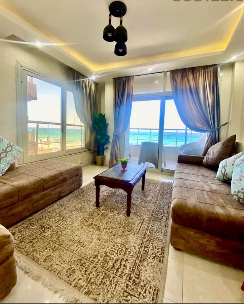 🏖️ Luxurious Beachfront Apartment in Gleam, Alexandria | Unforgettable Getaway! ✔️ Panoramic Sea Views: Wake up to waves & breathtaking vistas ! ✔️ Elegant Design: AC/heating in cozy bedrooms, stylish living room, modern kitchen . ✔️ Endless Entertainment: 55" Smart TV with Netflix & Shahid VIP + high-speed Wi-Fi. ✔️ Security: 24/7 , elevators. 📍 Prime Location: Steps from the beach 🌊 – swim or stroll at sunset! Gleam’s top restaurants/cafes ☕ Near Alexandria’s landmarks & shopping.ه