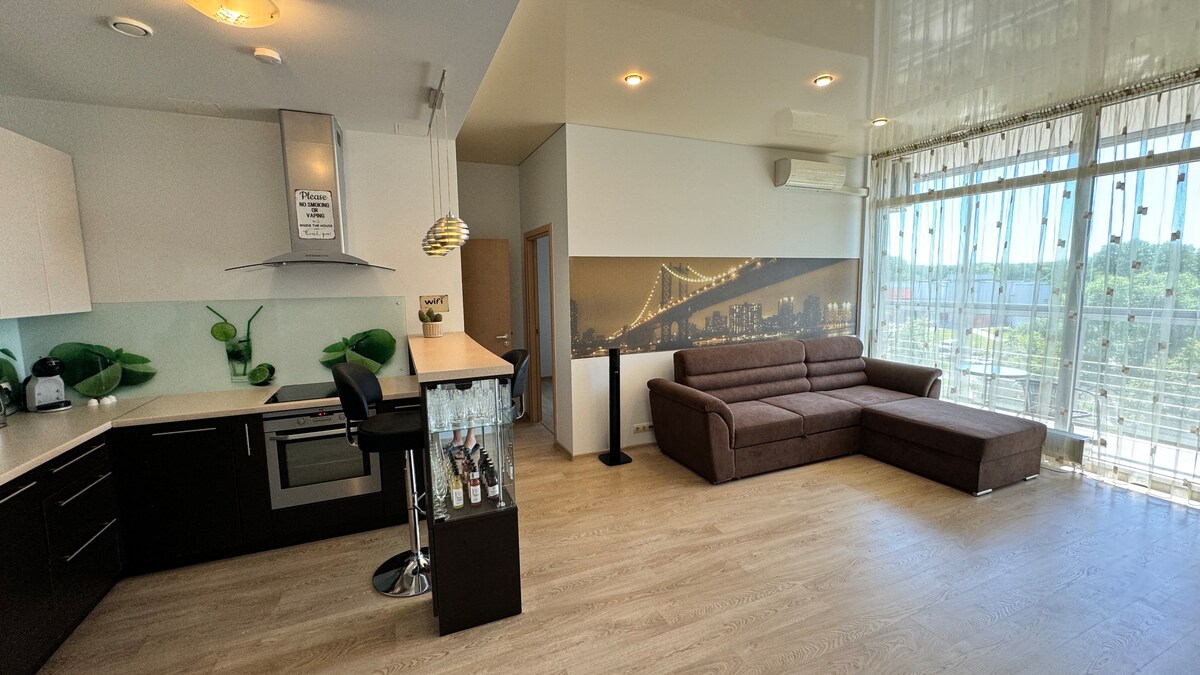 Egy természetes fénnyel árasztott, vidám stúdiólakás panorámás kilátással a parkra. Kiváló választás a kényelmes tartózkodáshoz vagy üzleti úthoz. Legyél a vendégünk, és mindent megteszünk, hogy kényelmes és élvezetes legyen a rigai tartózkodásod!