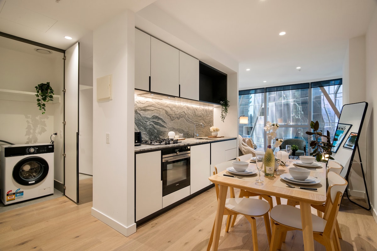 Ez a mesés kilátás a tengerre és a 2B2B Apt gyönyörű belső térrel és modern dizájnnal rendelkezik. Hihetetlen felszereltség és egy belvárosi elhelyezkedés a helyszínen. Percekre Mebourne étkező-, bevásárló- és szórakoztatóközpontjaitól. A Southern Cross állomás mellett található, és villamosmegállók, kávézók, látnivalók és üzletek veszik körül. A stílusos nappali és étkező a márványkonyhával kombinálva. A Winter Garden a mesterszobában tanulószobaként vagy teaszobaként használható. Ingyenes nagysebességű WIFI. Nexflix TV. Mindenen túl.