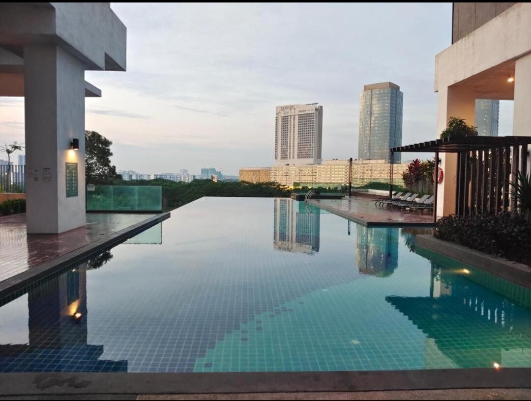 *ÚJ* Küldd el nekem a „New package” szót, és 8% pénzvisszafizetést kapsz. Menekülj el a mindennapokból a stílusos, két hálószobás lakásunkba Johor Bahru 33. emeletén. Ez a modern, minimalista szállás lenyűgöző kilátást nyújt a városra, és kényelmesen elfér benne 6–7 fő. Tökéletes családok vagy üzleti utazók számára, és rendelkezik Netflix-szel ellátott HD-projektorral, nagy sebességű 5G Wi-Fi-vel és jól felszerelt konyhával. Élvezd az egyedülálló városi kiruccanást üdülőhelyi kényelmekkel.